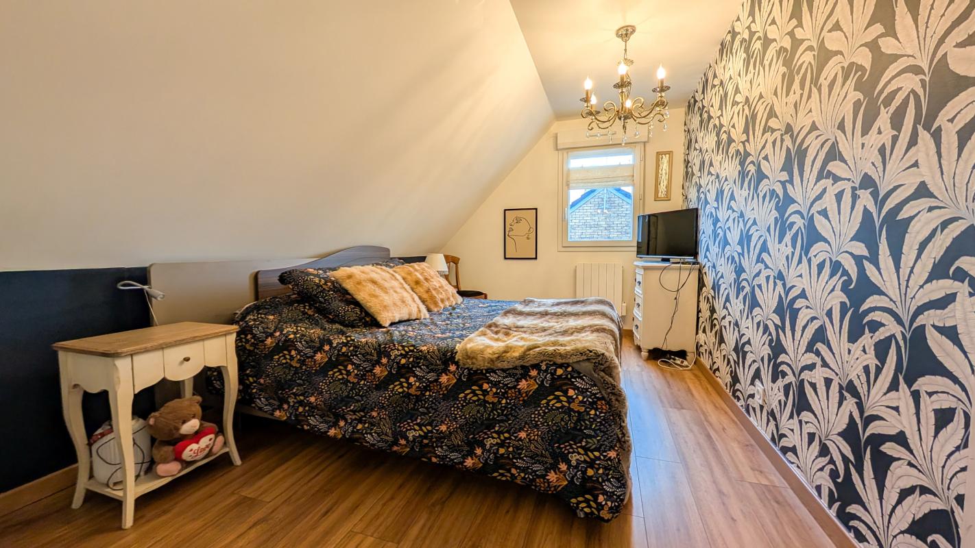 Superbe Pavillon individuel de 100 m² habitables construit en 2013 bâti sur 782 m² offrant au rez de chaussée un Hall d'entrée avec rangement, Salon/Séjour ouvert sur cuisine équipée Schmidt de 46 m², Cellier et WC. A l'étage un palier, 3 chambres et une salle de bains avec WC.