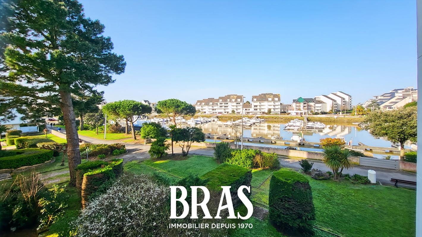 Dans résidence sécurisée et calme, Appartement comprenant une entrée, dégagement avec placards, une cuisine aménagée et équipée, une salle d'eau avec wc, une pièce faisant office de couchage et une belle salle de séjour avec balcon , vue sur le port du Pouliguen.