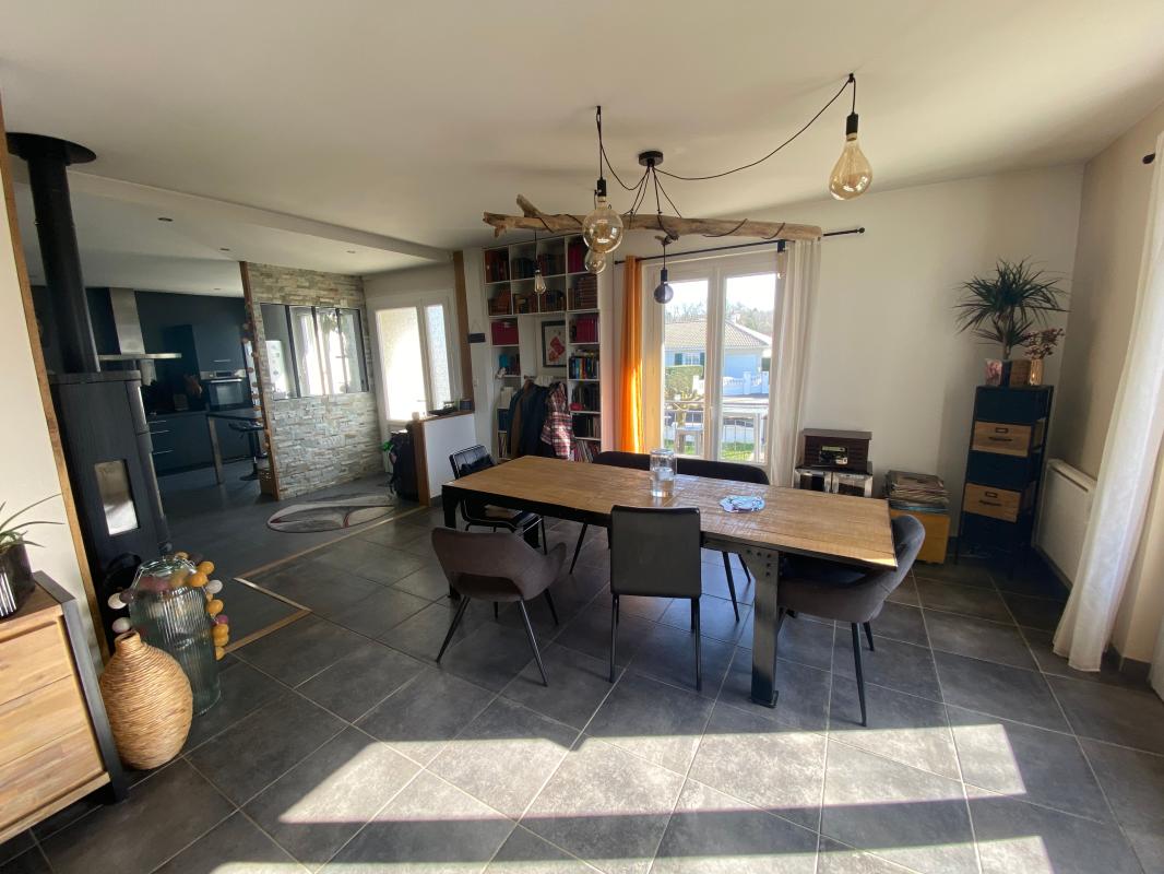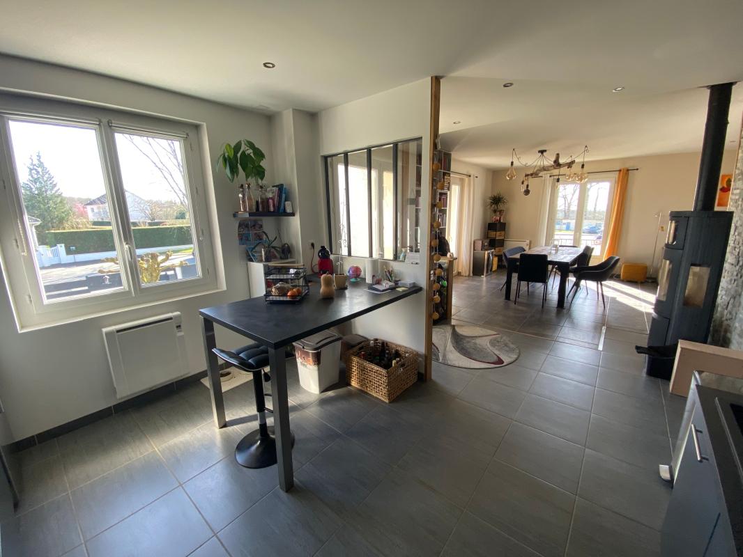 Ce bien d'une surface généreuse avec une belle pièce de vie de 51 m², chaleureuse et conviviale, agrémentée d'un poêle à bois et ouverte sur une cuisine équipée moderne et parfaitement aménagée.