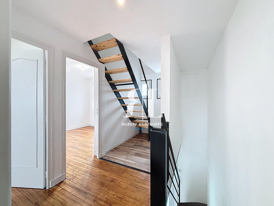 Le second niveau propose également de beaux volumes avec un palier d'environ 11 m² pouvant accueillir un espace bureau ou dressing, une quatrième chambre d'environ 14 m² ainsi qu'une salle d'eau avec WC.