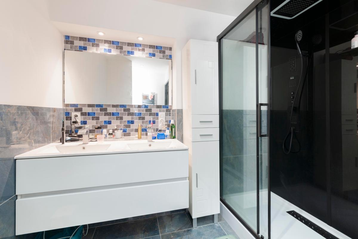 L'appartement dispose également de deux chambres confortables, d'une salle d'eau, ainsi que d'un cellier pratique pour le rangement du quotidien.