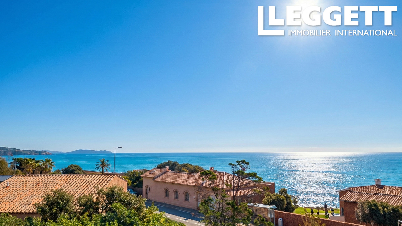 A43173VAP83 - Située en position dominante en front de mer à Anthéor, entre les roches rouges du Massif de l'Estérel et la Méditerranée, cette villa de 215 m² bénéficie d'une vue mer panoramique à 180° sans vis-à-vis.
