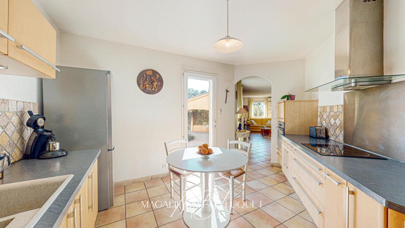 Cuisine semi-ouverte de 12 m², parfaitement aménagée et équipée.