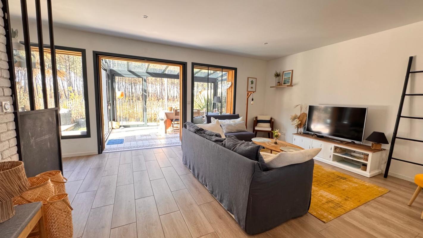 LEGE BOURG Appartement rare avec jacuzzi et 150 m² de jardin privatif face à la forêt ! dans une petite copropriété, entièrement de plain-pied, il vous offre une pièce principale lumineuse avec cuisine ouverte sur salon et une pièce repas dans une véranda chauffée véritable pièce de vie avec vue forêt. 2 chambres avec terrasse côté Est, salle de bains, wc. 45 m² de terrasse bois qui accueille un beau Jacuzzi, chauffage au gaz de ville par le sol, cet appartement n'a rien de commun, c'est un véritable joyau ! Le jardin privatif de 150 m² fait oublier qu'il s'agit d'un appartement et non d'une maison. Vous bénéficierez aussi de 2 places de parking privées. Vous n'osiez en rêver pensant qu'elle n'existait pas, et pourtant cette pépite n'attend que vous !