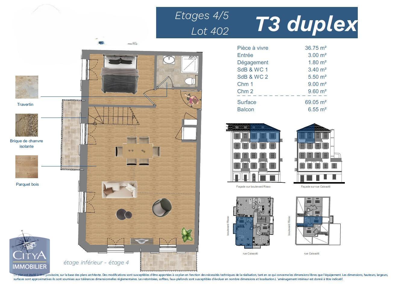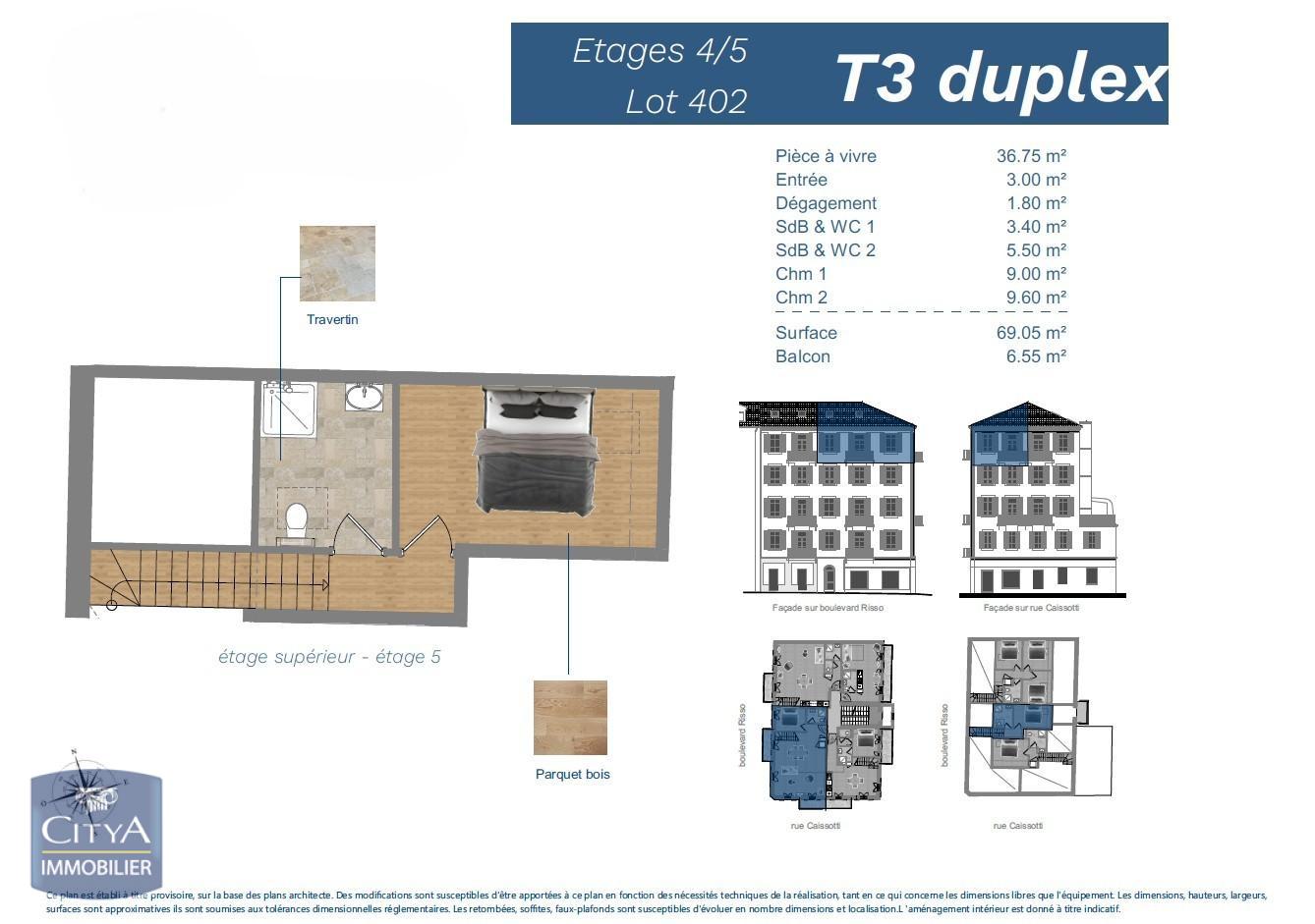 NICE DUPLEX T3 NEUF QUARTIER REPUBLIQUE - Dans un immeuble niçois de caractère du début du XXe siècle entièrement réhabilité, découvrez ce duplex 3 pièces en dernier étage de 69.05 M2, d'un balcon de 6.55 M2 issu d'une surélévation de deux niveaux offrant des prestations contemporaines tout en conservant le charme architectural du bâtiment.