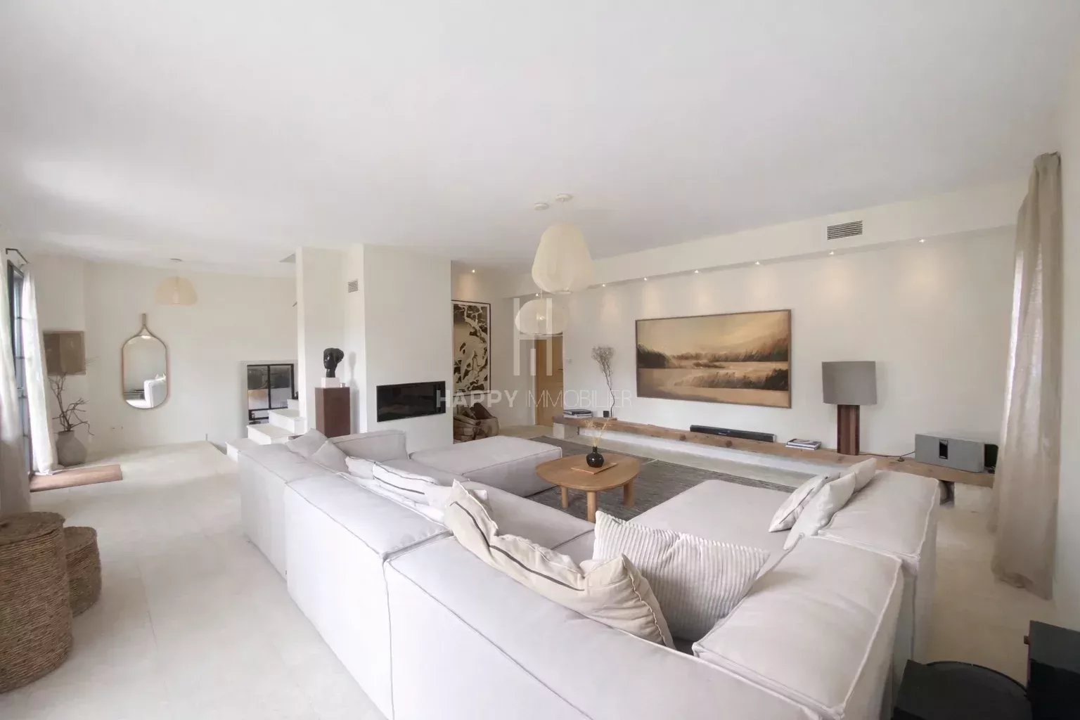 D’une surface d’environ 290 m², la propriété séduit par ses volumes généreux et sa luminosité exceptionnelle. Les matériaux de qualité subliment l’ensemble : dalles en pierre, sols anciens, finitions soignées et belles prestations.