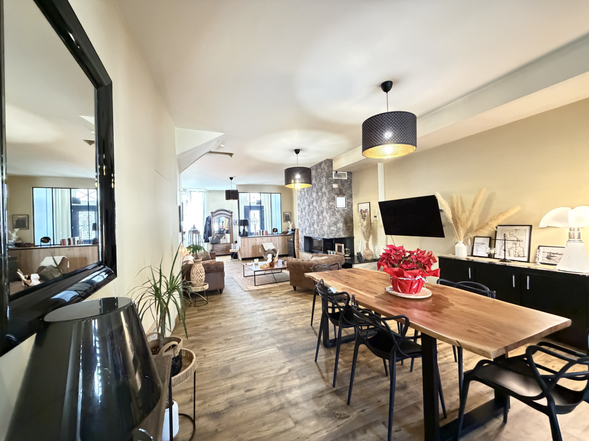 Dès l'entrée, vous découvrez un superbe espace de vie traversant en rez-de-chaussée, offrant une atmosphère chaleureuse et conviviale. La cuisine, parfaitement équipée, s'ouvre directement sur une agréable terrasse, un jardin intimiste et une piscine, créant un véritable espace de vie intérieur/extérieur idéal pour recevoir.