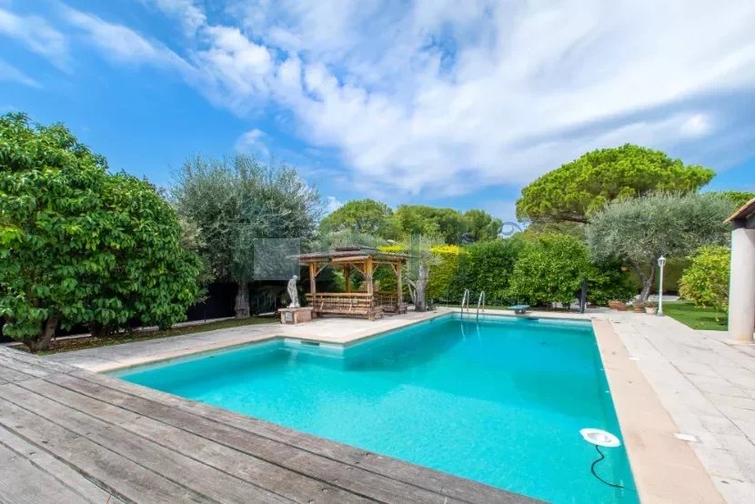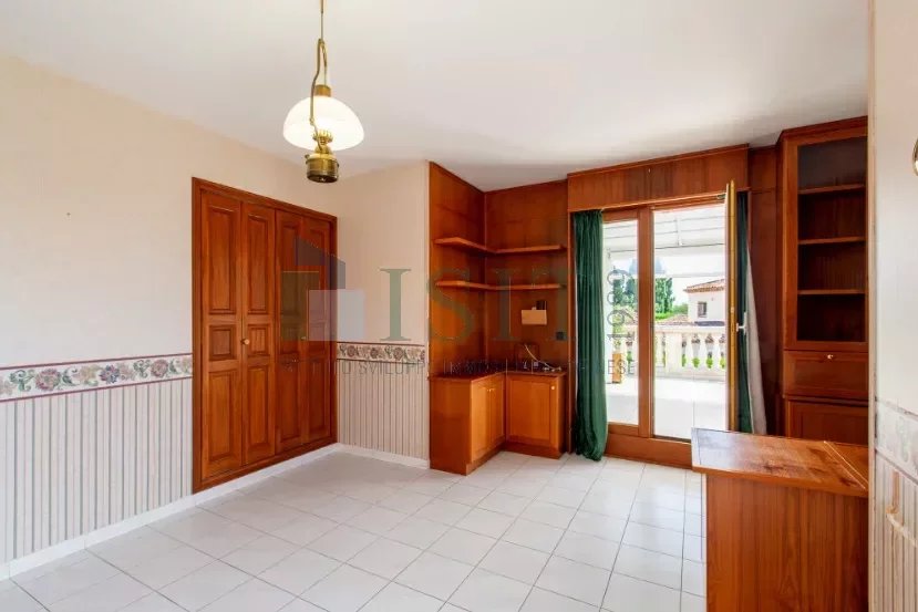 VILLEFRANCHE-SUR-MER : Située dans le domaine fermé du Castellet, au calme, avec un ensoleillement du matin au soir, très belle villa néo-provençale de plus de 200 m2 habitables, bâtie sur un beau terrain plat et arboré de 1500 m2 avec grande piscine. Elle offre 8 pièces principales dont un grand séjour, 5 chambres et 4 salles de bain ou douche, un bureau, une buanderie et de nombreux rangements, sans oublier le grand garage et l'immense sous-sol. Pratique à vivre et très confortable, elle nécessite une petite modernisation. Honoraires de 5% inclus à la charge du vendeur.
