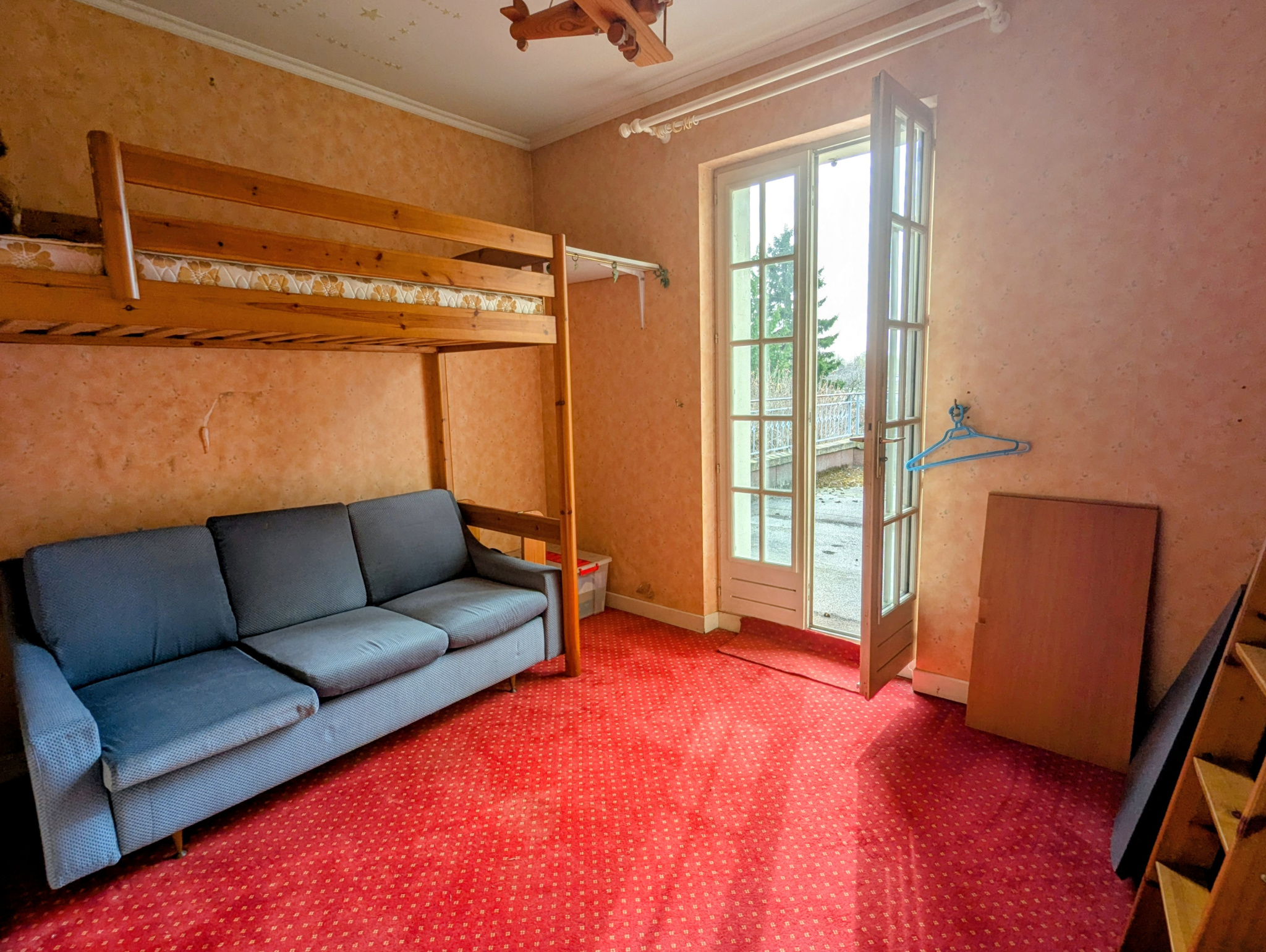 À l'étage, un palier dessert deux chambres, chacune avec accès à une agréable terrasse, ainsi qu'une salle d'eau avec WC. Au-dessus, vous trouverez un coin nuit mansardé, idéal pour un espace couchage, un bureau ou une salle de jeux.