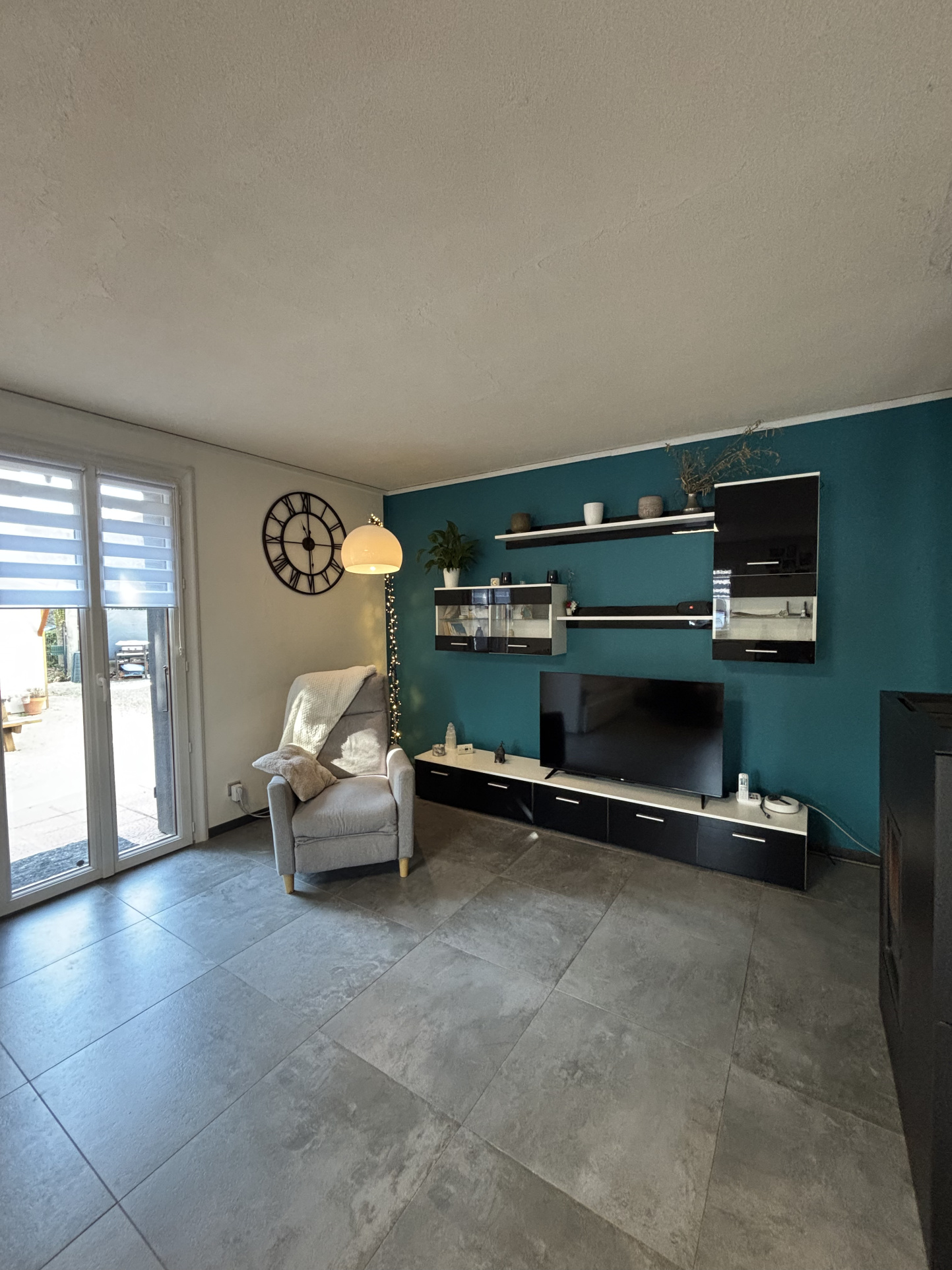 Puis vous glissez vers mon salon et ma cuisine ouverte. Le coeur battant de la maison. On y prépare le dîner tout en racontant sa journée. On s'installe près du poêle à granulés quand le temps fraîchit. On circule naturellement, sans se gêner. La maison respire.