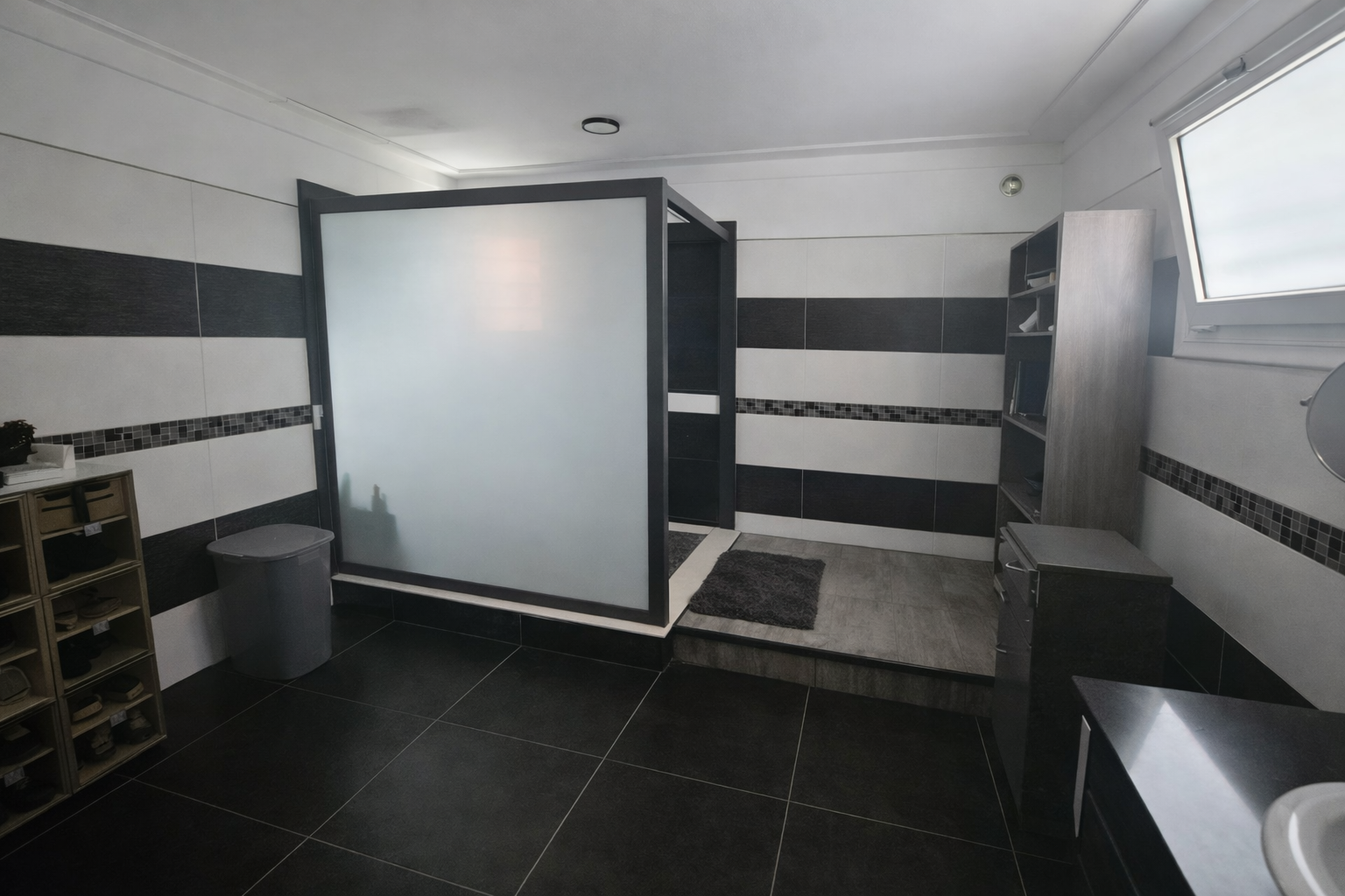 Au rez-de-chaussée, les espaces de vie ont été pensés pour allier confort et convivialité :une salle à manger élégante ouverte sur une varangue fermée, un séjour convivial, ainsi qu'une cuisine fonctionnelle parfaitement intégrée.