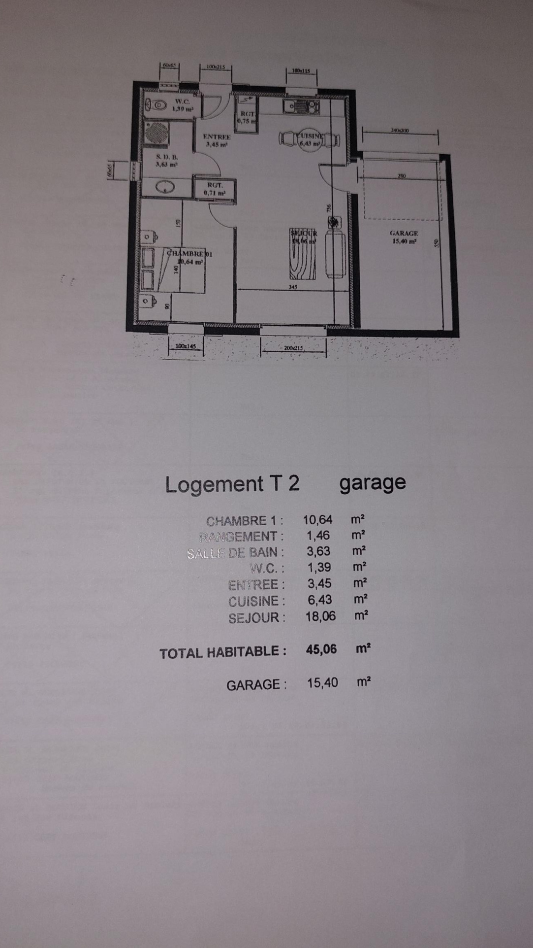 Dans une copropriété horizontale, construction de 2005, petit pavillon loué de type 2 comprenant hall d'entrée, pièce de vie avec coin cuisine, chambre, salle d'eau et wc. Garage. Chauffage individuel électrique.