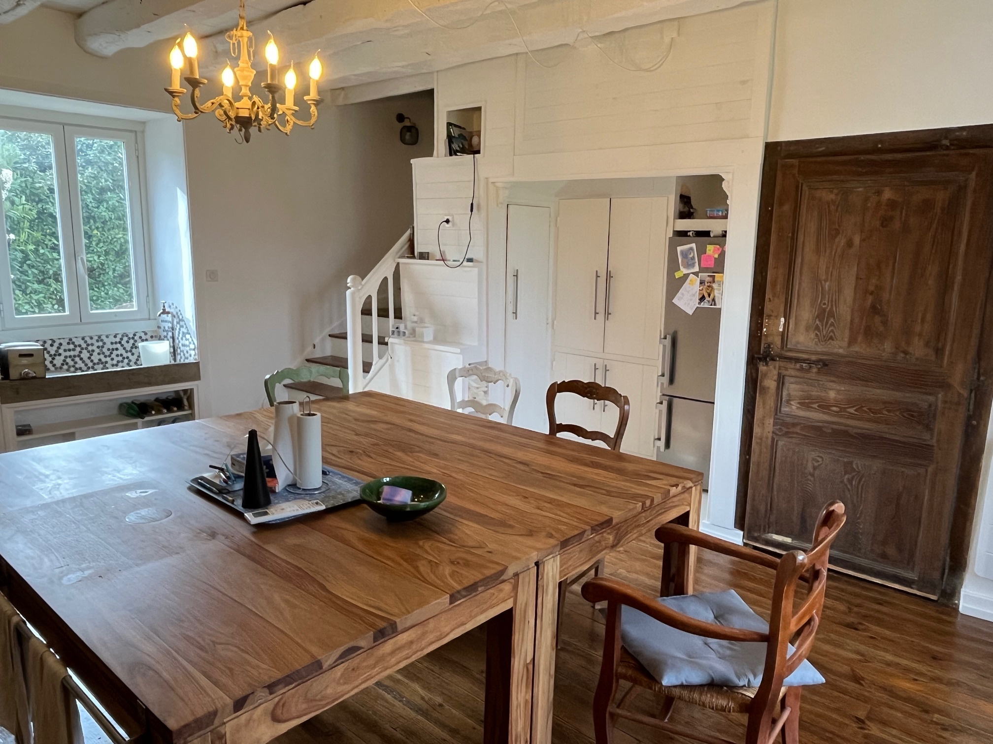 Maison principale comprenant entrée avec placards, une grande cuisine / salle à manger avec cantou, séjour cheminée insert à bois, salle de bains wc et buanderie ; à l'étage trois chambres dont une avec dressing, Salle d'eau et WC lavabo. Combles aménageables au-dessous. Tout rénovée avec gout et des matériaux de qualité ; clim réversible, panneaux solaires, fenêtres alu, électricité neuf, assainissement neuf. Aucun travaux. Très bonne étiquette énergétique avec faible consommation d'energie.