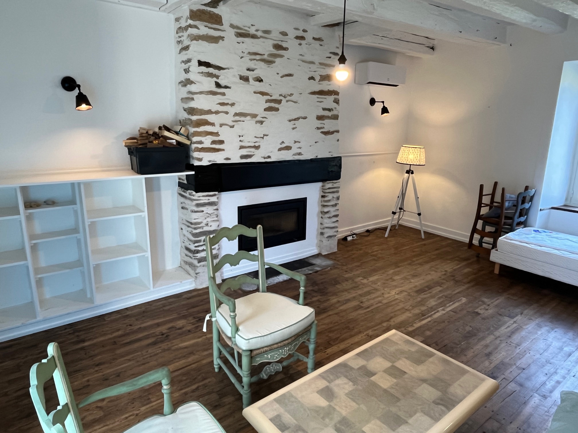 Deuxième maison en pierre en cours de rénovation comprenant pièce principale, chambre suspendu et salle de bains wc; grenier plus grange attenante d'environ 90m2 offrent la possibilité d'agrandissement. Ancien four à pain attenante aménagée en atelier (four non fonctionnelle). Branchement eau, électricité et assainissement fait. Toiture neuve.