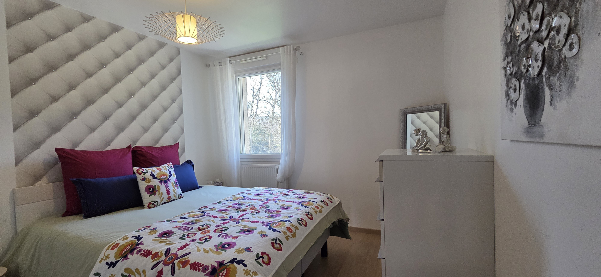 La partie nuit donnant sur le parc, comprend deux chambres, une salle d'eau moderne et une buanderie fonctionnelle avec wc.