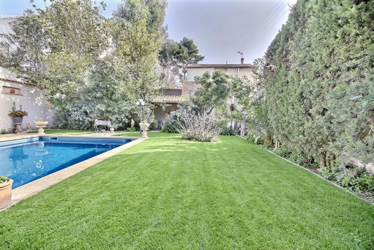 Entre Saint-Pierre et La Pomme, dans une rue résidentielle, découvrez cette vaste maison de 170 m2 habitables (186 m2 au sol) située sur une parcelle d'environ 500 m2 avec jardin et piscine au calme. Exposée Est-Ouest, ce bien profite d'une belle luminosité traversante tout au long de la journée. Les espaces d'habitation se répartissent sur 3 niveaux. Le rez-de-chaussée comprend une entrée, deux grandes chambres de 19 m2, une salle d'eau rénovée, une buanderie et un WC. Au premier niveau, vous profiterez d'un spacieux salon-salle à manger, avec cheminée, ainsi que d'une cuisine donnant accès à une agréable terrasse ensoleillée dominant le joli jardin. Le second étage, sous combles, accueille une chambre de 24 m2, une salle de bains ainsi qu'un espace bureau et coin lecture. L'extérieur constitue un véritable atout avec sa grande piscine, sa terrasse et une cuisine d'été sous terrasse couverte. L'accès est sécurisé par un portail permettant le stationnement de deux ou trois véhicules (abris voiture). Des travaux de rénovation énergétiques et un rafraîchissement global sont à prévoir pour révéler tout le potentiel de ce bien, qui est parfaitement entretenu et sain. La taxe foncière est de 4356 EUR. A 2mn des accès autoroutiers. Contact : Jérôme Daher - 06 82 56 98 98 ou Agence - 04 91 47 56 05