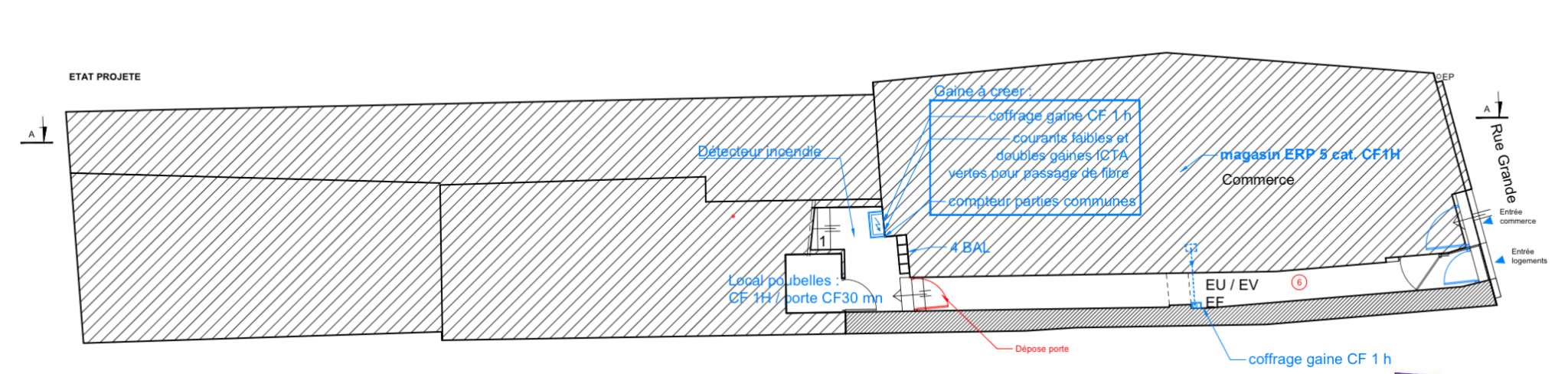 - Rez-de-chaussée : entrée indépendante desservant les étages. Local poubelles