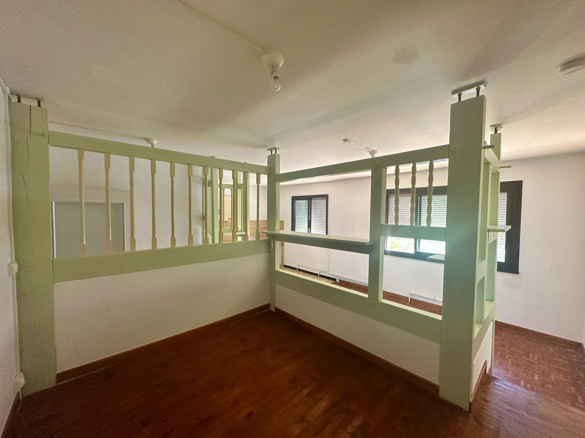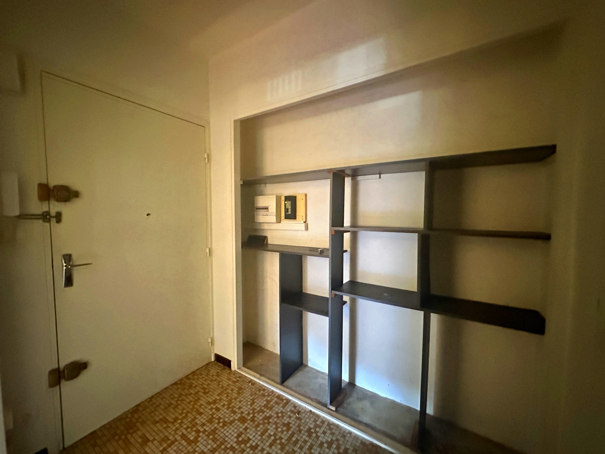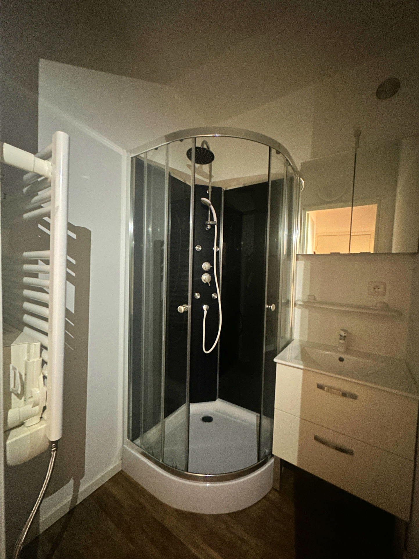 L'appartement se compose d'une pièce de vie lumineuse avec cuisine aménagée et équipée (plaque gaz et hotte). Sa particularité : une estrade avec quelques marches qui permet de délimiter naturellement l'espace salon de l'espace nuit, offrant ainsi un agencement original et fonctionnel.
