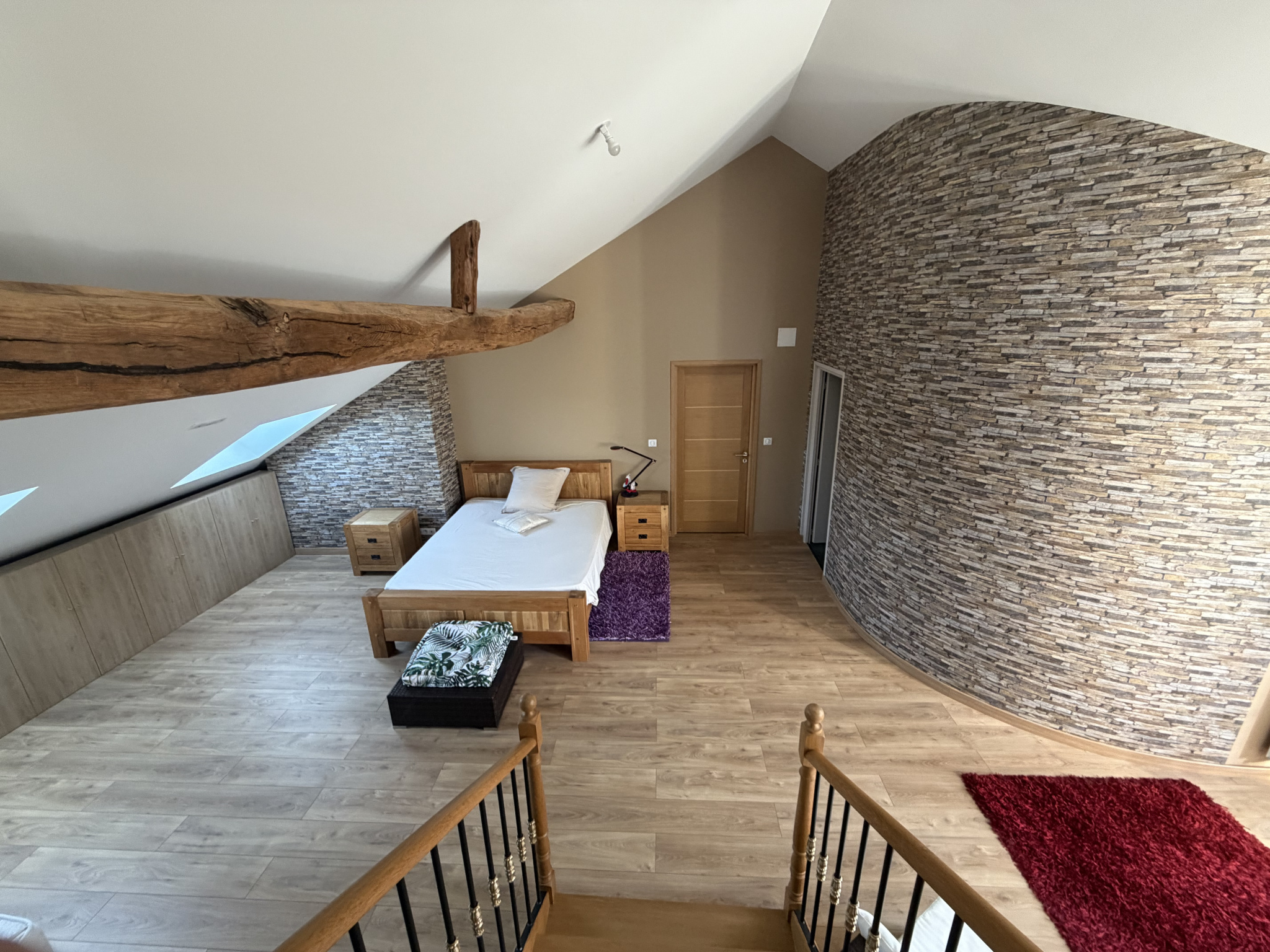L'espace nuit est particulièrement généreux avec 5 chambres spacieuses, dont une suite parentale d'exception de 36 m2 nichée au second étage.Il y a également un studio qui est actuellement utilisé comme chambre supplémentaire. Avec les 3 entrées de la maison vous pouvez facilement faire du logement ou du Airbnb. Pour votre confort, la maison compte 3 salles de bains/eau réparties sur les différents niveaux.