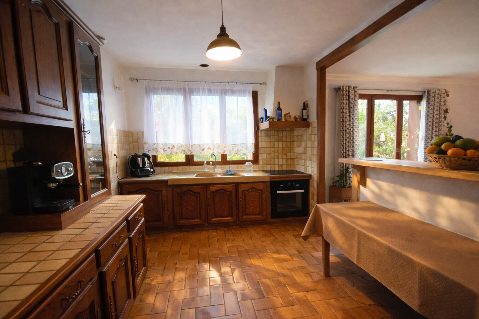 La partie habitable se compose d'un bel espace de vie de plus de 30 m2 avec insert, idéal pour des moments chaleureux, d'une cuisine indépendante de 11 m2, ainsi que de deux belles chambres.