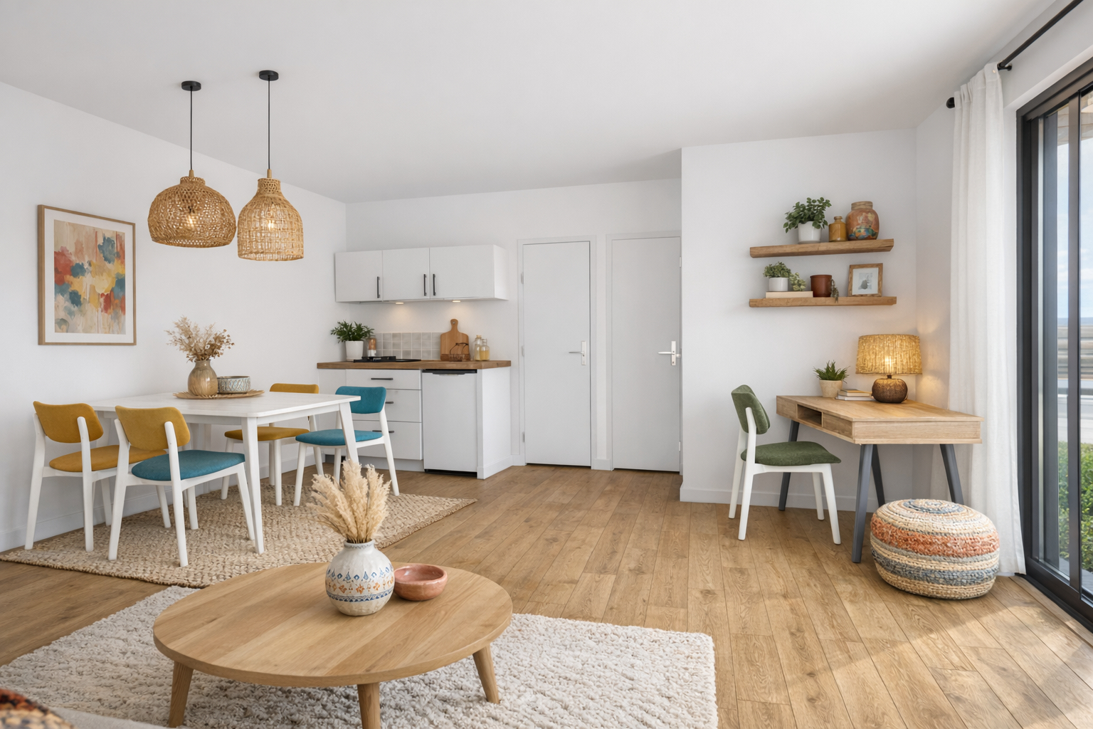 Studio de plain-pied d'environ 33 m² vendu dans une petite copropriété de 5 lots.