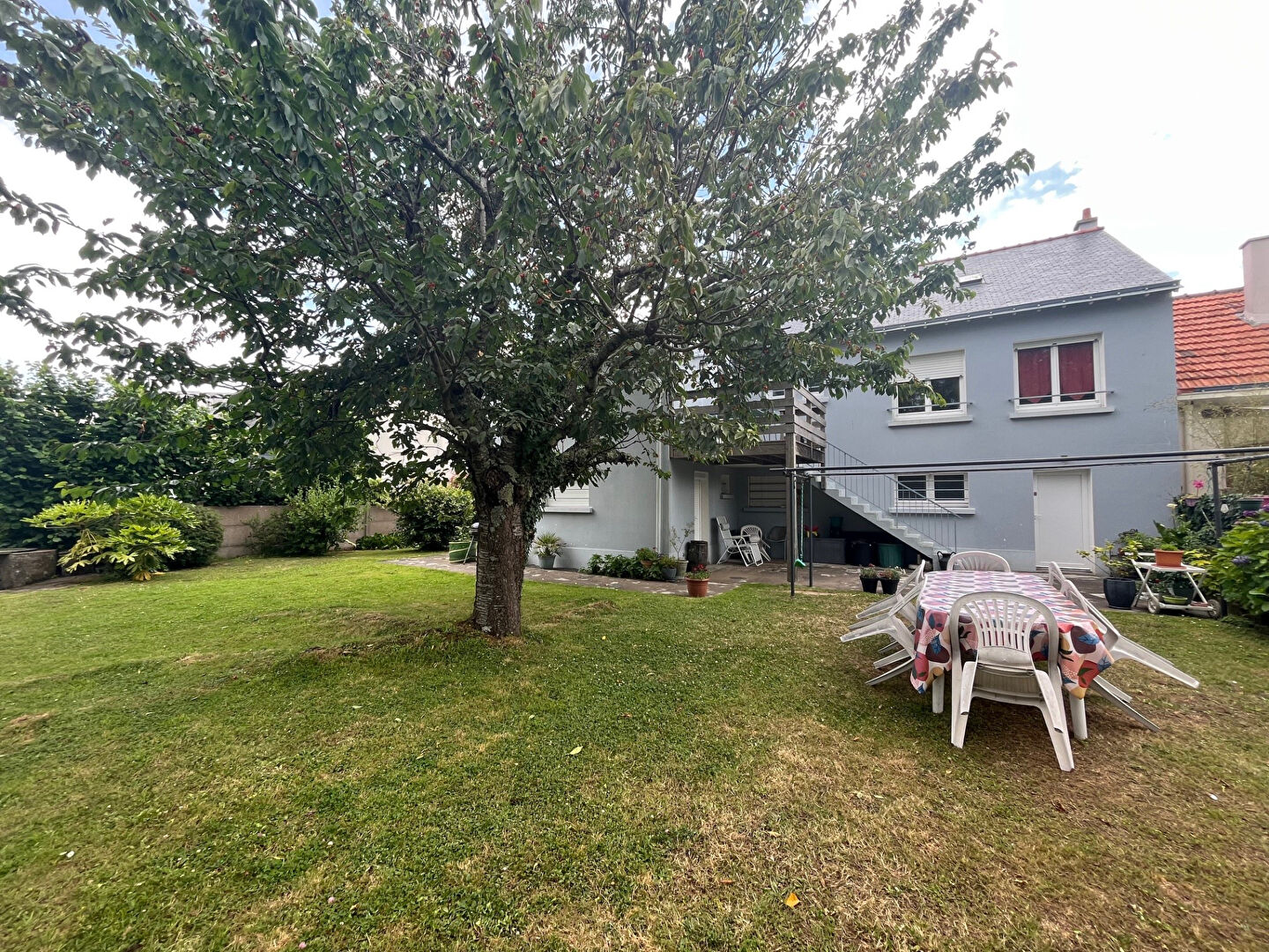 Maison nantaise comprenant au rez-de-chaussée une entrée, un grand garage, une buanderie, une chambre avec point d'eau, un WC, une pièce avec WC. A l'étage, un palier dessert un salon, une cuisine aménagée et équipée avec un espace séjour donnant sur une belle terrasse , 3 chambres, une salle d'eau, un WC. Le tout sur un très beau terrain clos et arboré de 535 m2.