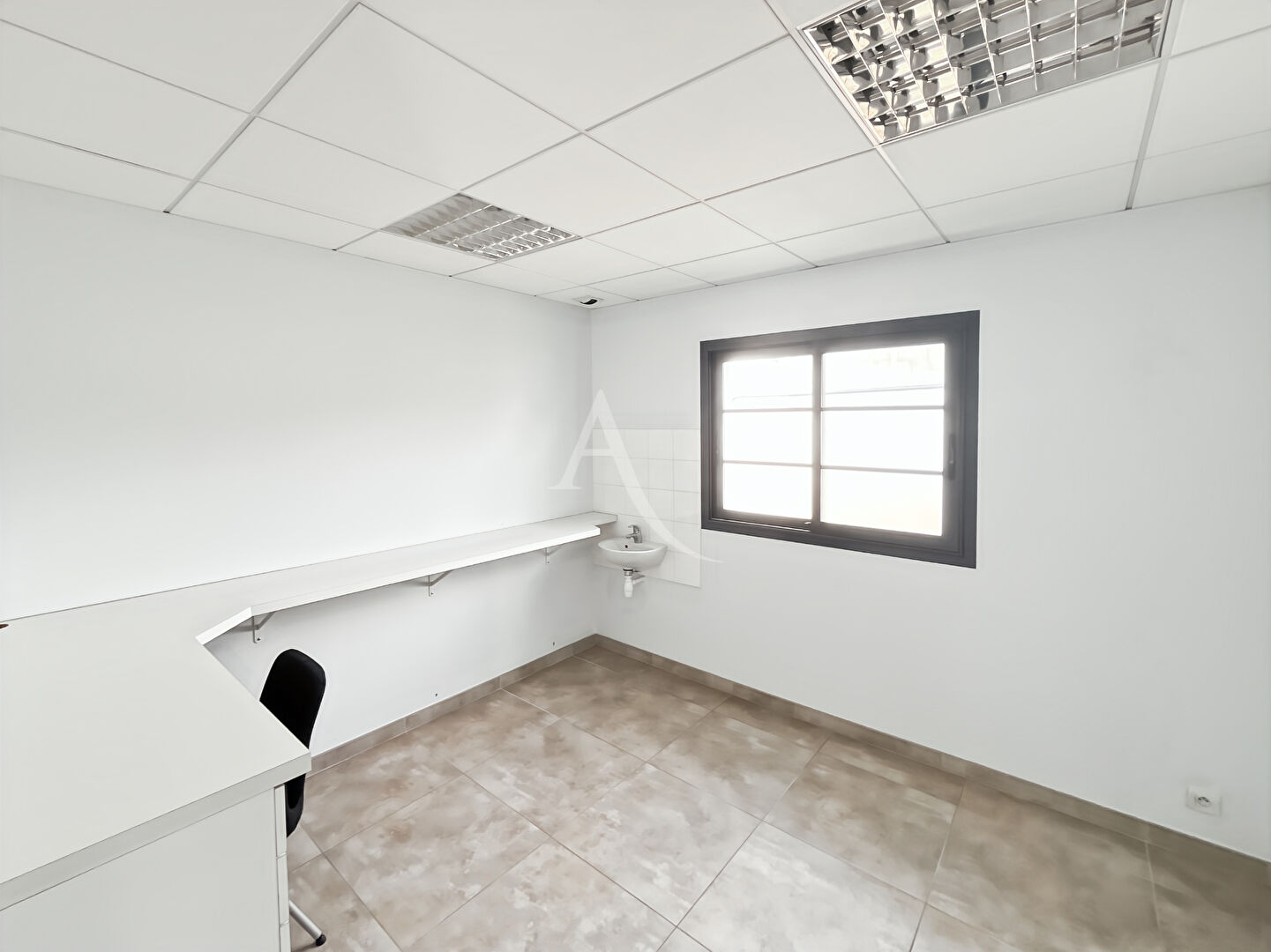 Situé au Pôle Activ'Océan, ce local professionnel de 155 m² offre un environnement stratégique pour une activité libérale ou tertiaire. Il comprend un espace d'accueil, un WC aux normes PMR, un dégagement desservant trois bureaux avec point d'eau privatif, un SAS menant à un quatrième bureau divisé en deux espaces, ainsi qu'un cinquième bureau indépendant accessible intérieur/extérieur avec salle d'eau et WC. Pièce d'archives. Climatisation réversible.