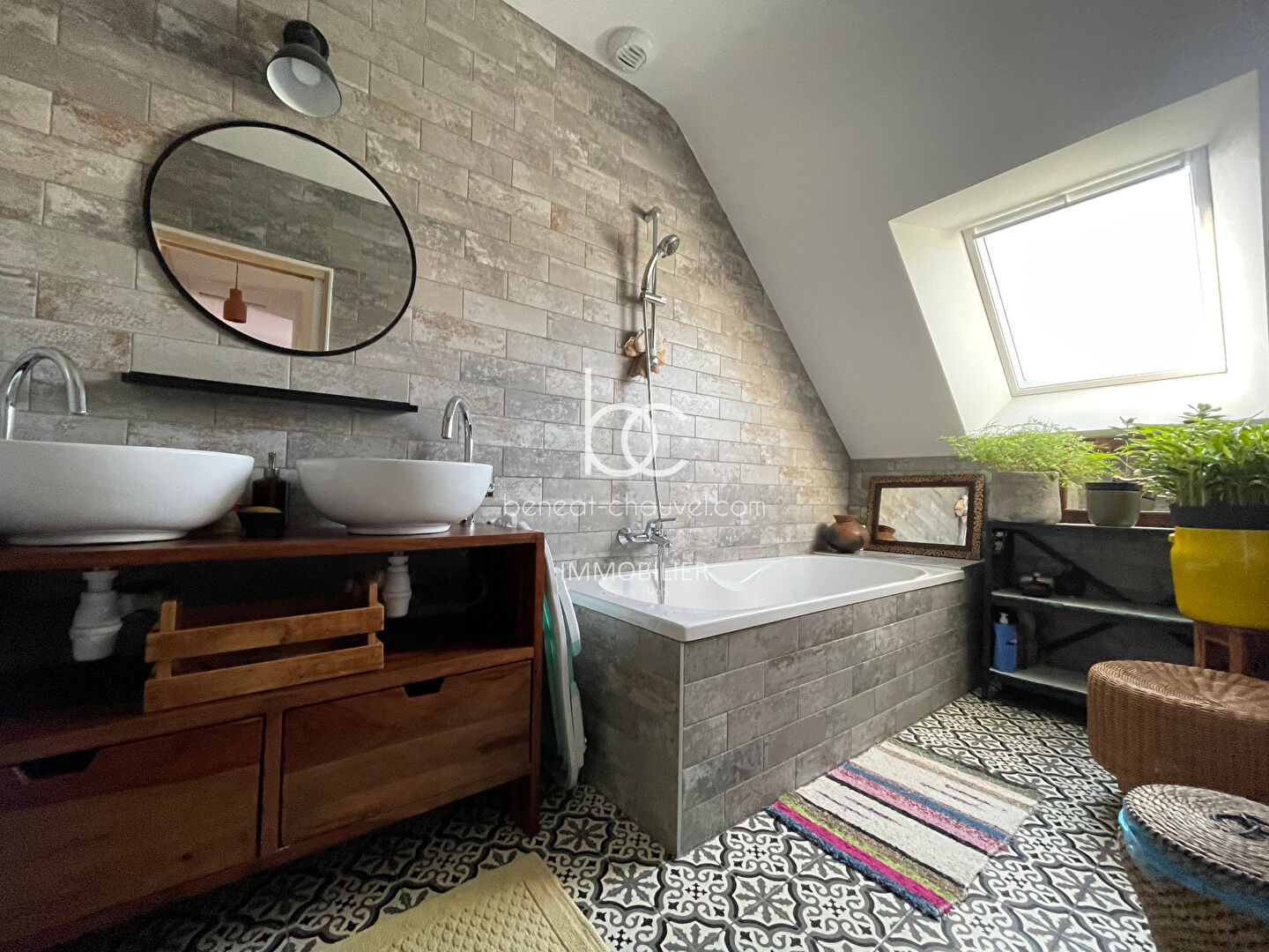 À l'étage, un grand dégagement lumineux fait actuellement office de bureau, mais sa configuration permet de le fermer aisément pour créer une chambre supplémentaire selon vos besoins. L'espace nuit se poursuit avec deux belles chambres qui offrent des volumes confortables. Une salle de bains soignée avec double vasque ainsi qu'un wc séparé, tous deux disposant de fenêtres, terminent la description de ce niveau.