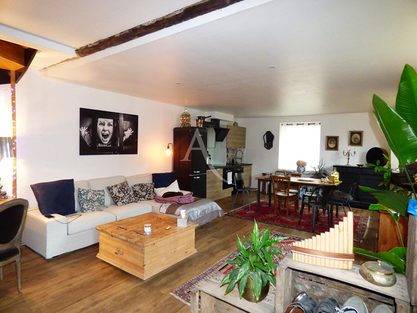 Agréable maison type longère entièrement rénovée avec goût bâtie sur un terrain de 350 m² clos comprenant un bel espace entrée salon/séjour et cusine repas façon open space, une salle d'eau avec coin buanderie, à l'étage un palier distribuant trois chambres.