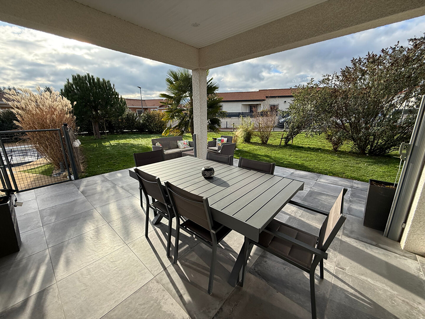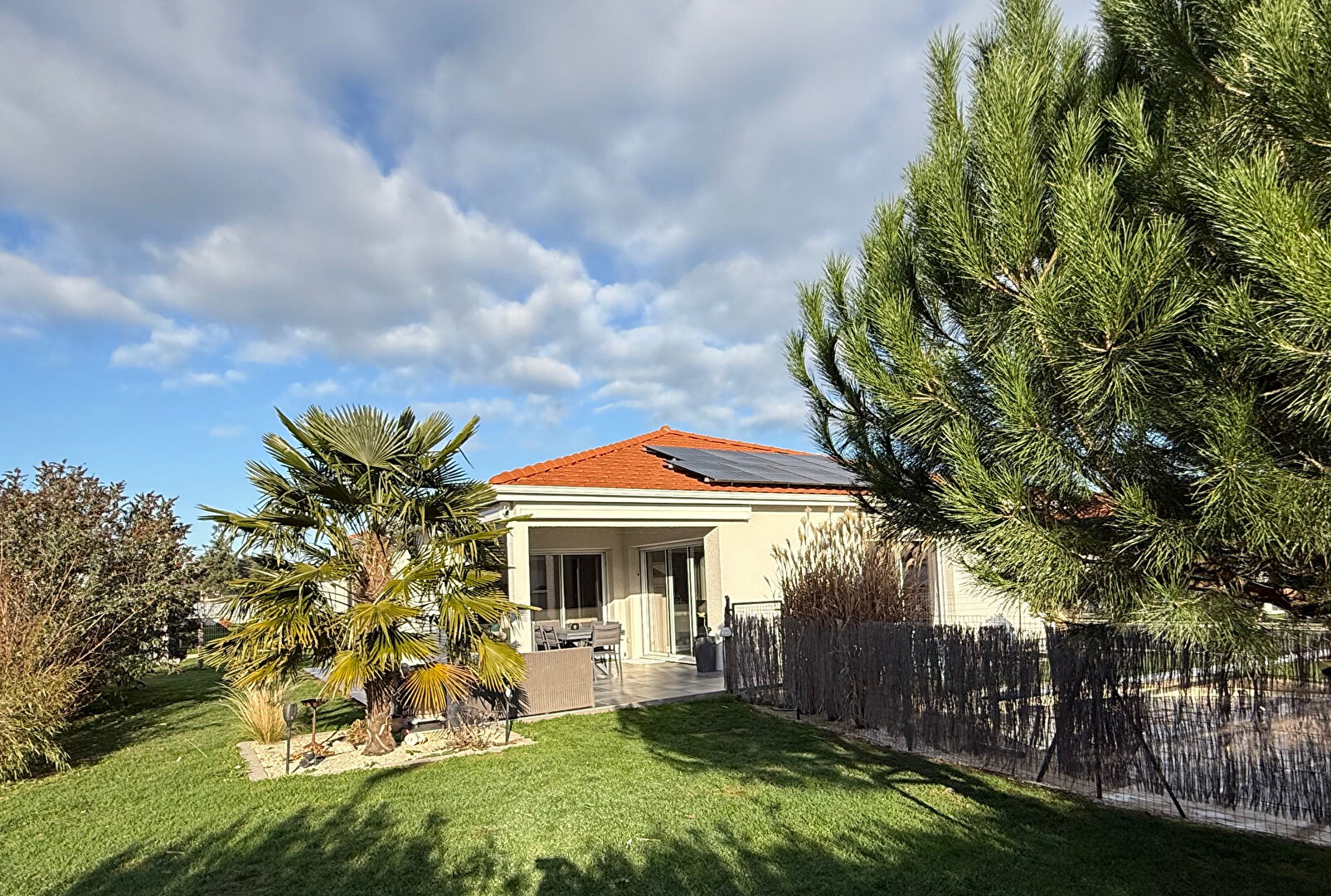 Villa de plain pied récente achevée en 2018 de 122 m² habitables, aux finitions soignées avec distribution contemporaine offrant hall d'entrée, cuisine aménagée ouverte sur séjour salon, terrasse couverte, dégagement, 2 chambres, possibilité 3, dressing, rangements, salle de bains avec baignoire balnéo et douche, wc, cellier, garage avec atelier. Terrain clos paysagé avec bassin de baignade, cour gravillonnée.