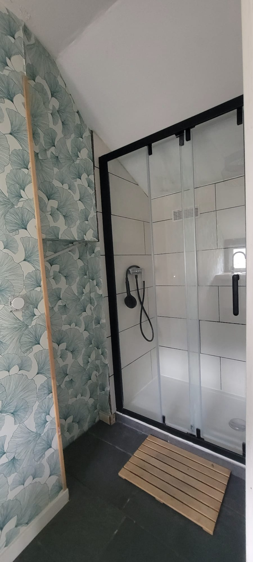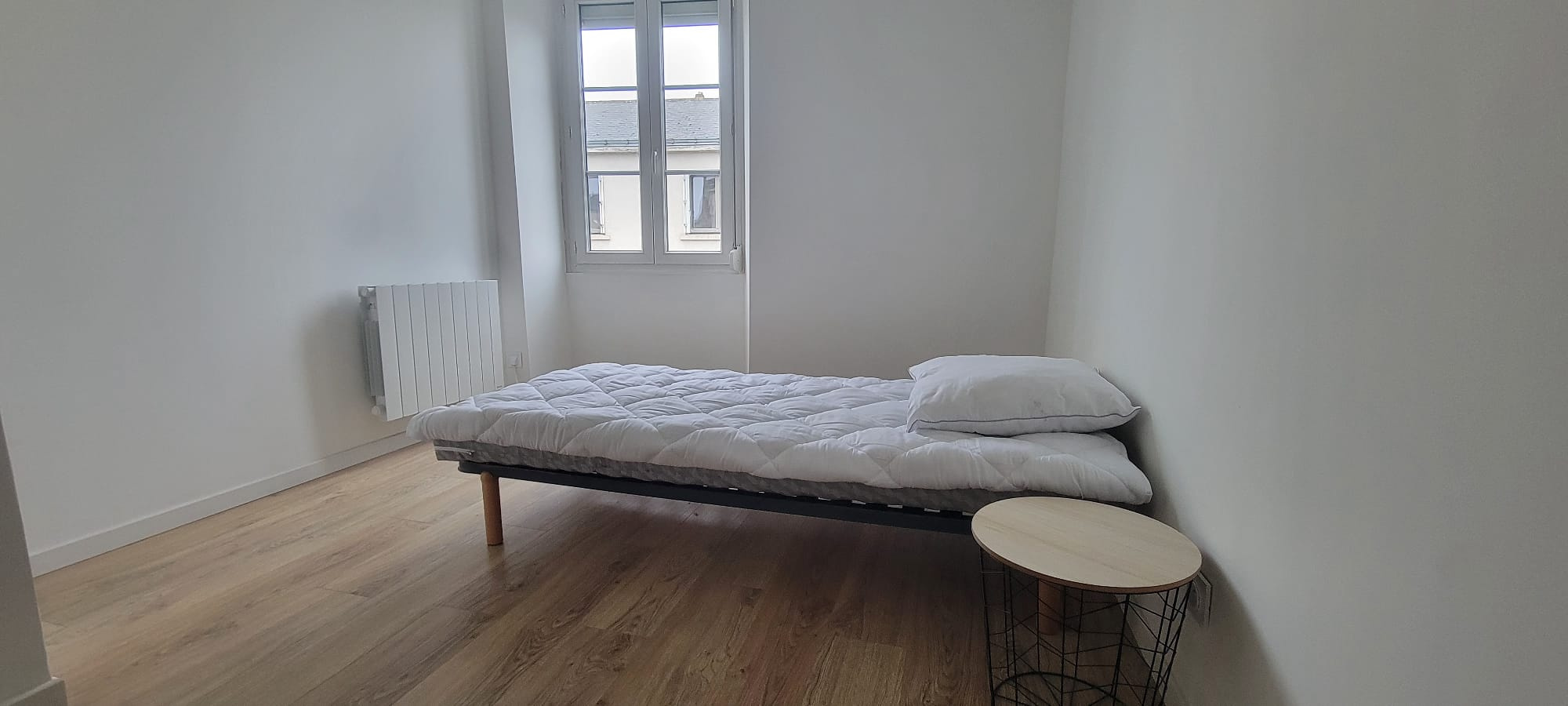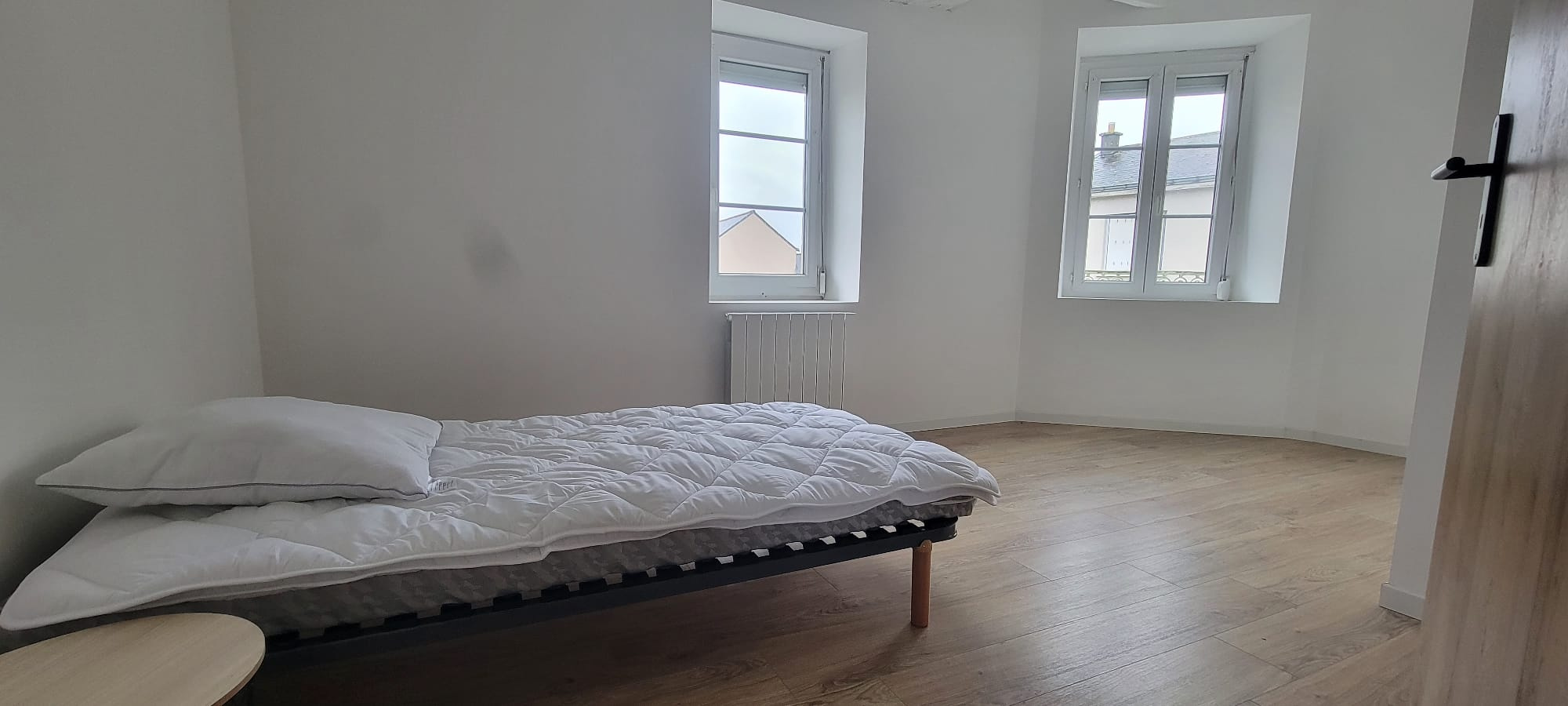 Lot 2 de 54.95 m2 (Loué avec extérieur) : Maison avec petite cour privative comprenant une cuisine, un séjour avec cheminée, 2 chambres, salle d'eau et WC.