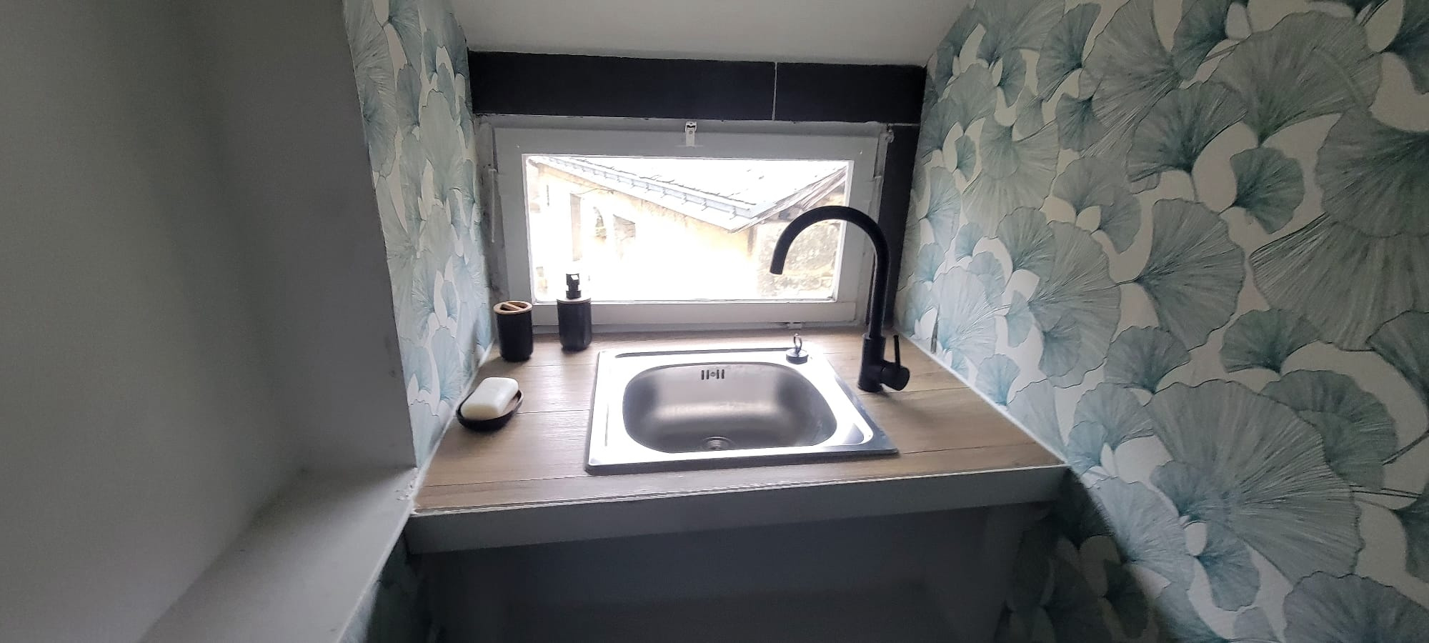 Lot 1 de 56 m2 (Libre & meublé) : Maison sans extérieur comprenant une pièce de vie avec cuisine équipée, WC et lingerie. À l'étage : 2 chambres et une salle d'eau. Idéal pour une mise en location immédiate.