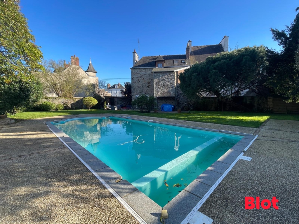 Située en plein centre de Vitré, cette authentique maison en pierres séduit par son caractère, ses volumes généreux et son cadre de vie privilégié. Implantée sur un terrain clos d'environ 1 000 m², elle offre un environnement agréable avec un grand jardin, une piscine creusée et un garage, idéal pour profiter des beaux jours en toute tranquillité.