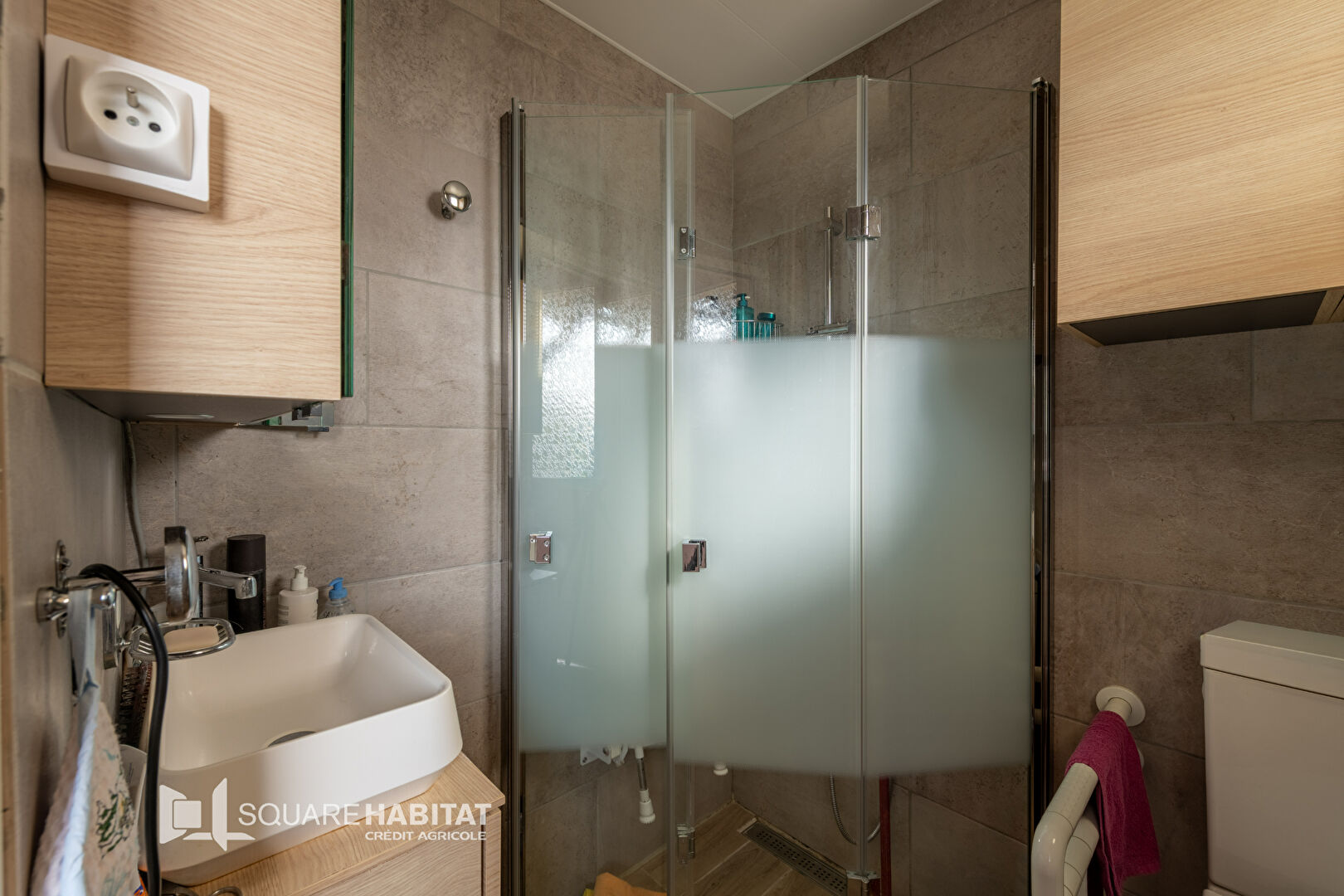 Elle est composée au rez de chaussée : une entrée, séjour/salon avec véranda, une cuisine aménagée, une très grande chambre ( divisible en 2 chambres) , une salle de douche avec wc