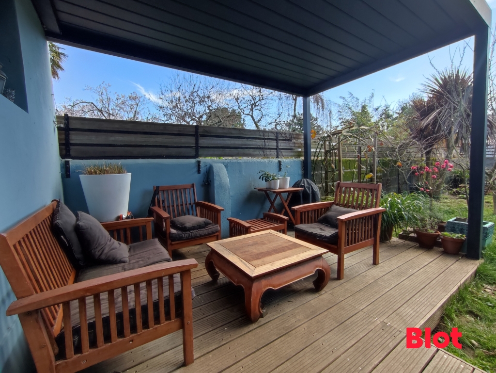 Elle bénéficie, au rez-de-chaussée, d'un salon-séjour donnant sur un jardin clos et ensoleillé, d'une belle cuisine aménagée-équipée, d'une arrière cuisine et d'une grande chambre.
