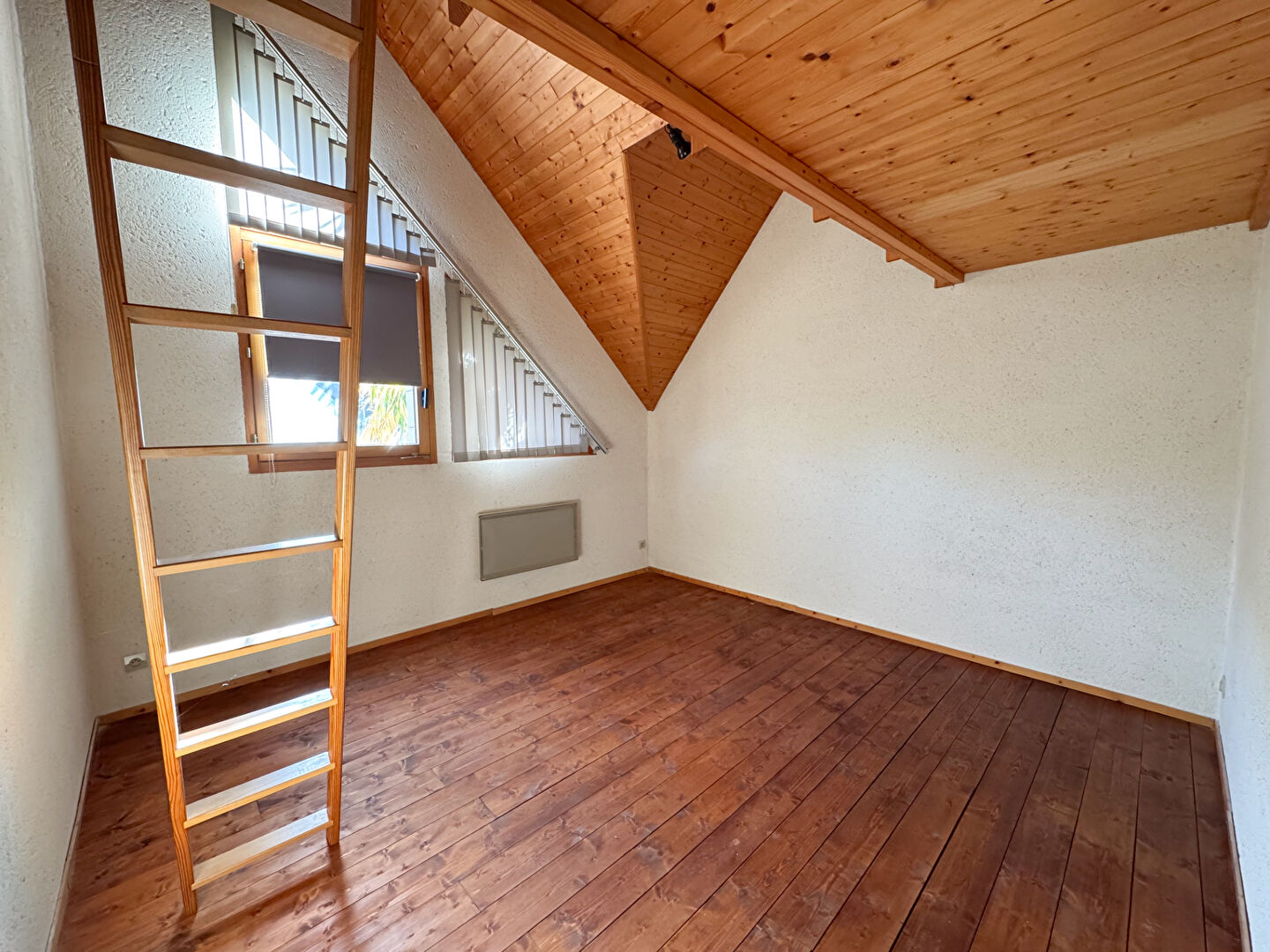 A l'étage, 2 chambres spacieuses avec espace mezzanine pour chacune. Une salle de bains avec WC.. Cette maison comprend au minimum 2 stationnements privatifs dans l'impasse.