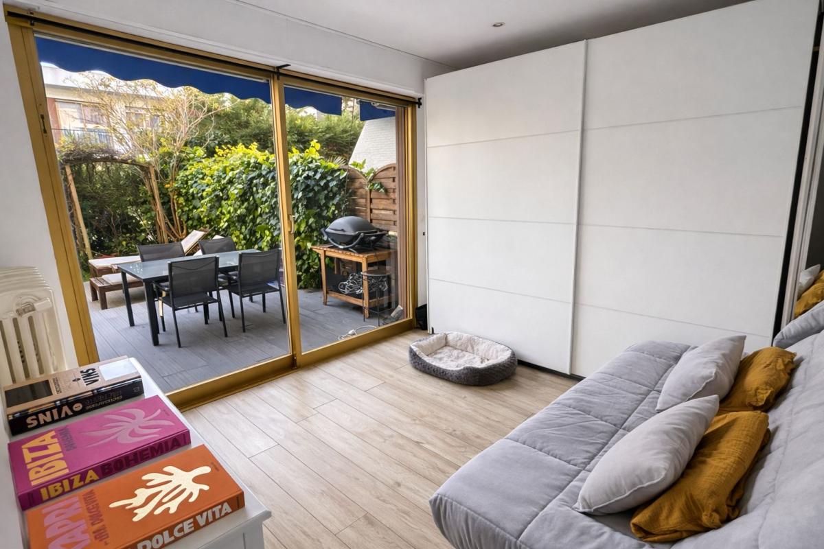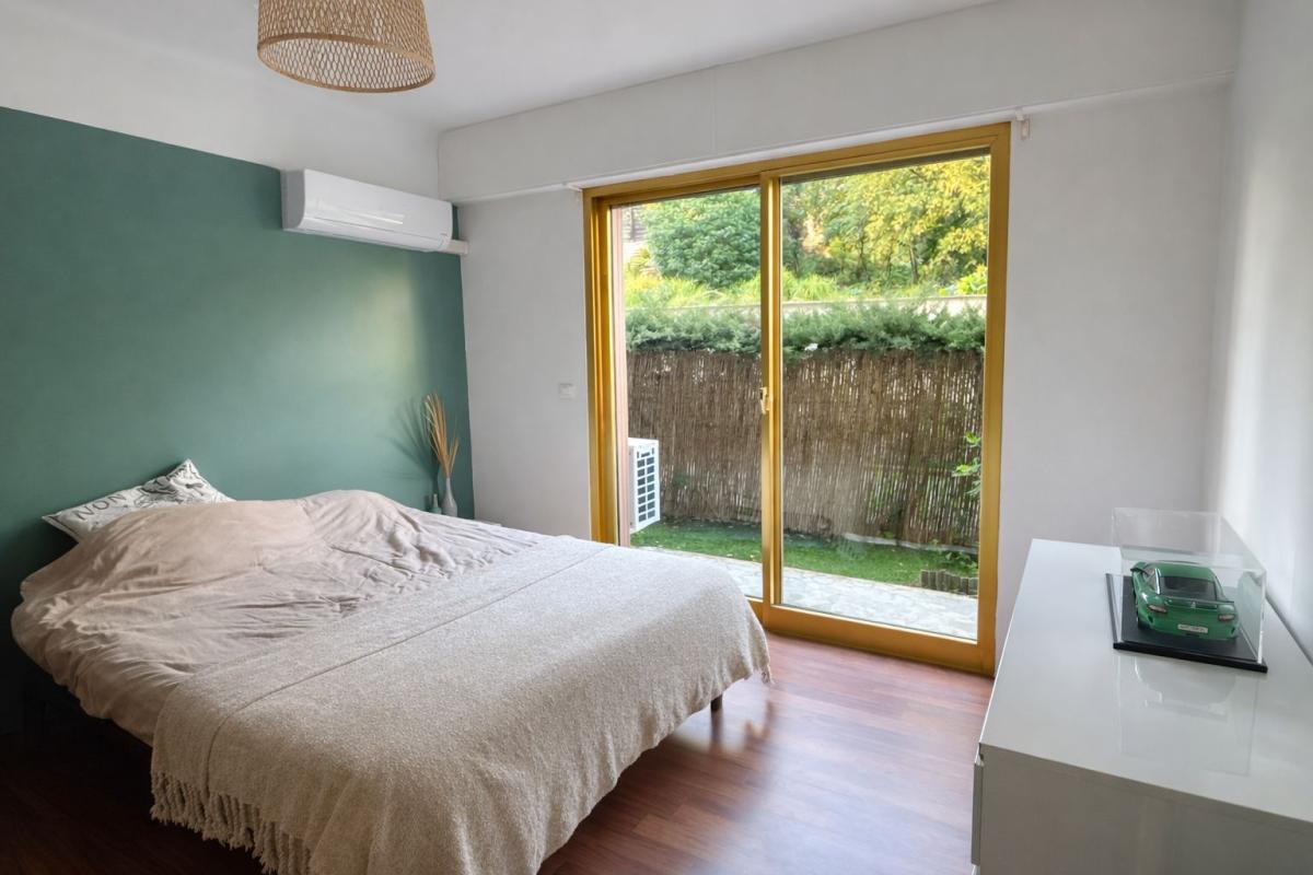 Traversant, l'appartement bénéficie d'une belle luminosité. Il s'ouvre sur une entrée avec rangements menant à un séjour lumineux orienté plein Sud, agrémenté d'une cuisine ouverte aménagée et équipée. L'ensemble se prolonge sur un grand jardin arboré exposé plein Sud.