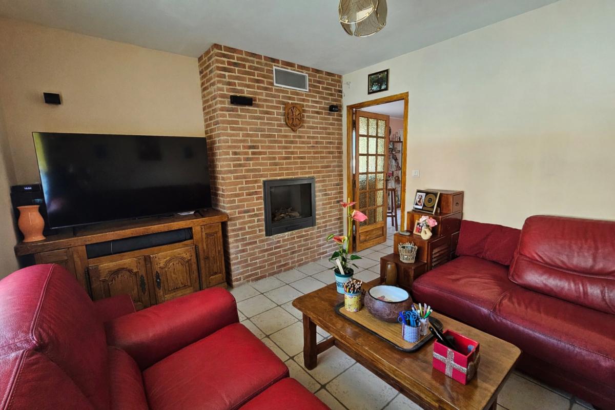 L'espace de vie, lumineux et convivial, se compose d'un salon élégant avec cheminée au gaz, d'une salle à manger accueillante et d'une spacieuse cuisine aménagée et entièrement équipée, idéale pour recevoir famille et amis.