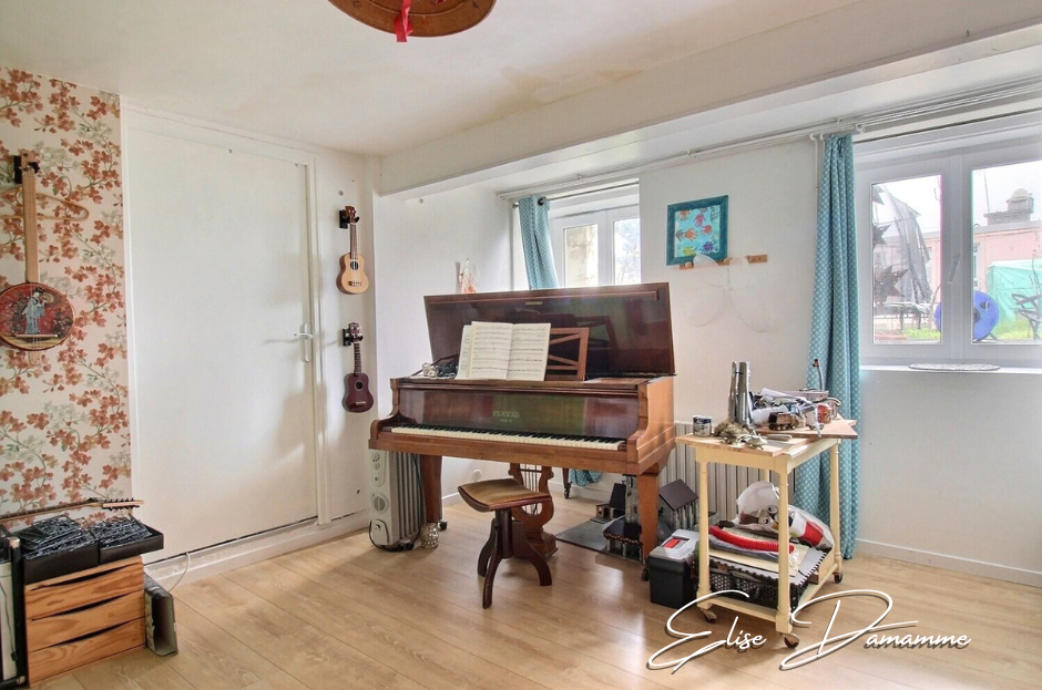 Le logement principal de 178 m² habitables, libre de toute occupation, comprend sur le premier niveau, une entrée, une cuisine ouverte sur le séjour-salon, un WC ainsi qu'un espace bureau.