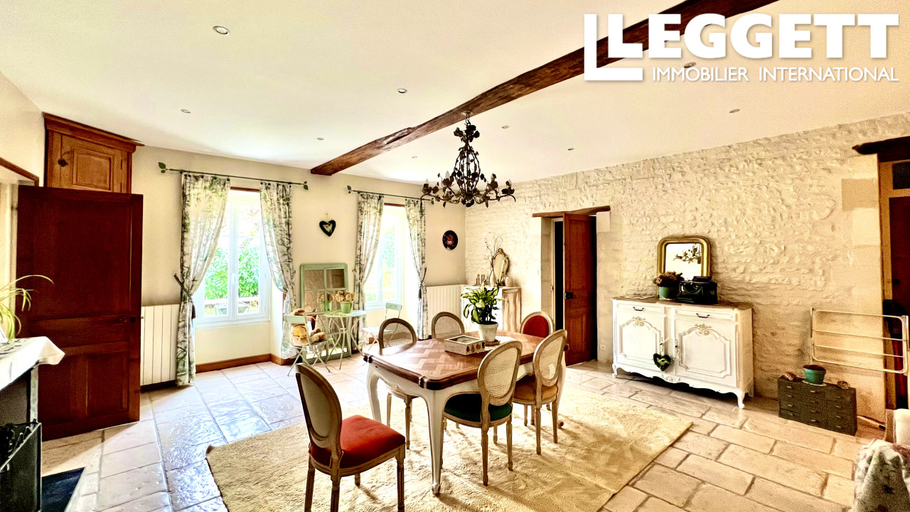A43237LOP17 - Nichée dans un charmant village de Charente-Maritime 20mn de Cognac, 6mn de Jarnac-Champagne, 50mn de la côte Atlantique,1h30 de l'aéroport de Bordeaux, au coeur des vignes du cognaçais, cette belle maison de caractère bien entretenue, à la façade en pierres de taille vous séduira par son authenticité. Des espaces généreux, des pièces lumineuses, ancien charme & confort moderne. Avec parquets massifs, sol en mosaïque, sescalier majestueux en bois massif, tommettes, ferronneries & ses cheminées fonctionnelles. Garage avec porte motorisée, chaudière à granulés Okofen (2023) performante & autonome pour un meilleur confort de vie, puits de lumière, double vitrage, bon DPE, nombreuses rangements (dressing, placards muraux, armoires faites sur mesure par un menuisier), matériaux de qualité, jardin entièrement clos & arboré pour profiter pleinement de beaux moments en famille ou entre amis & autonomie totale en eau grâce a sont puit pour de belles économies ; un réel atout pour cette maison. .