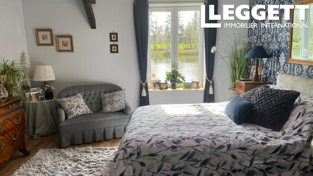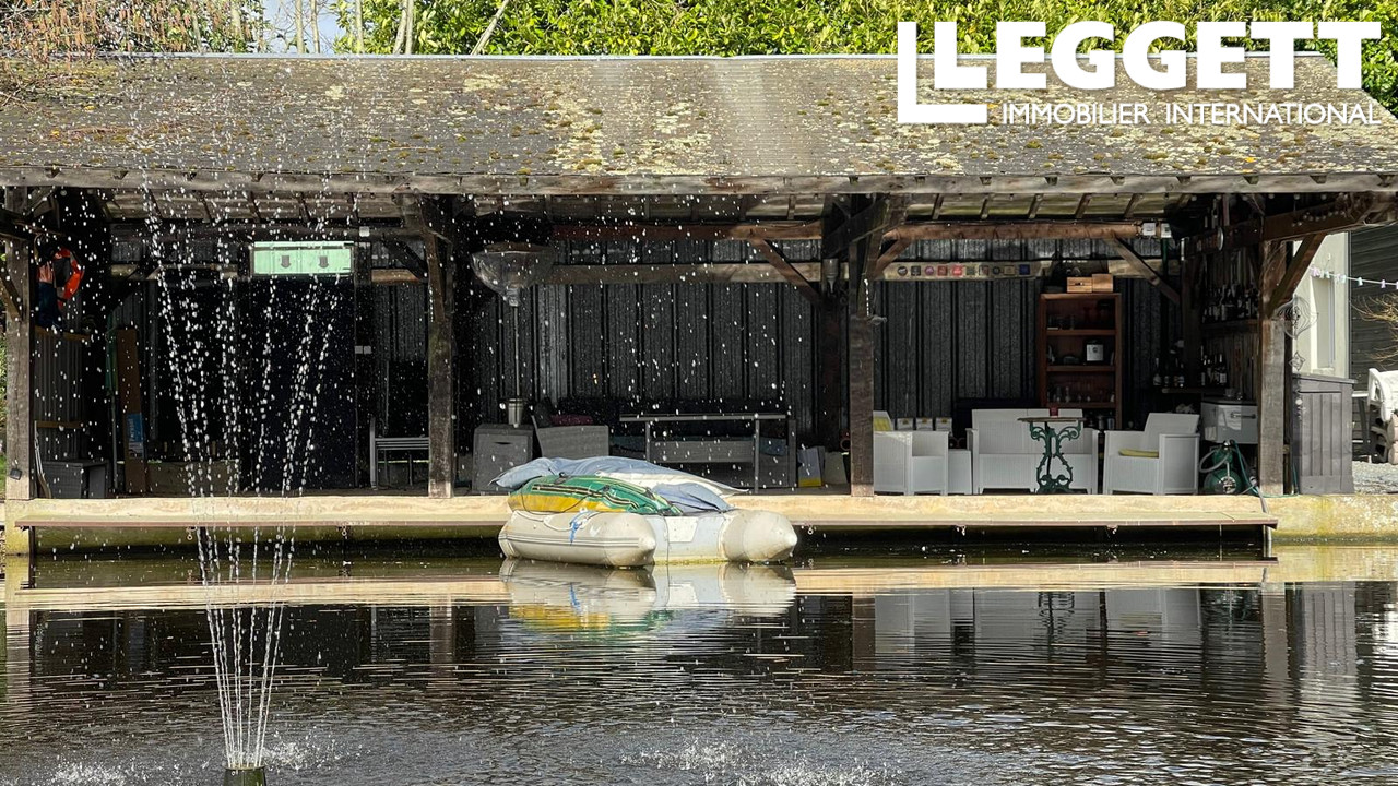 A43080DSE61 - Un magnifique étang de pêche à la carpe d'environ 3,6 acres, situé dans un cadre privé près de Passais la Conception, comprenant une maison familiale avec 2/3 chambres, un gîte de luxe avec une chambre, un pavillon de pêcheur et un hangar à bateaux transformé en bar relaxant donnant sur l'étang.