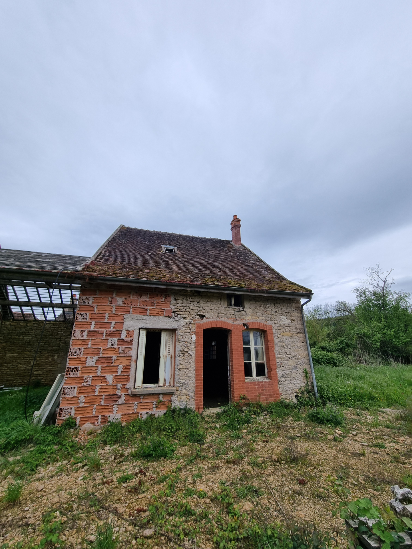 Sur un terrain de 1317 m2, un ensemble immobilier composé d'une maison d'environ 44 m2 sur deux niveaux, en cours de rénovation avec un garage de 31 m2, d'une ancienne étable d'environ 112 m2 transformable en habitation.