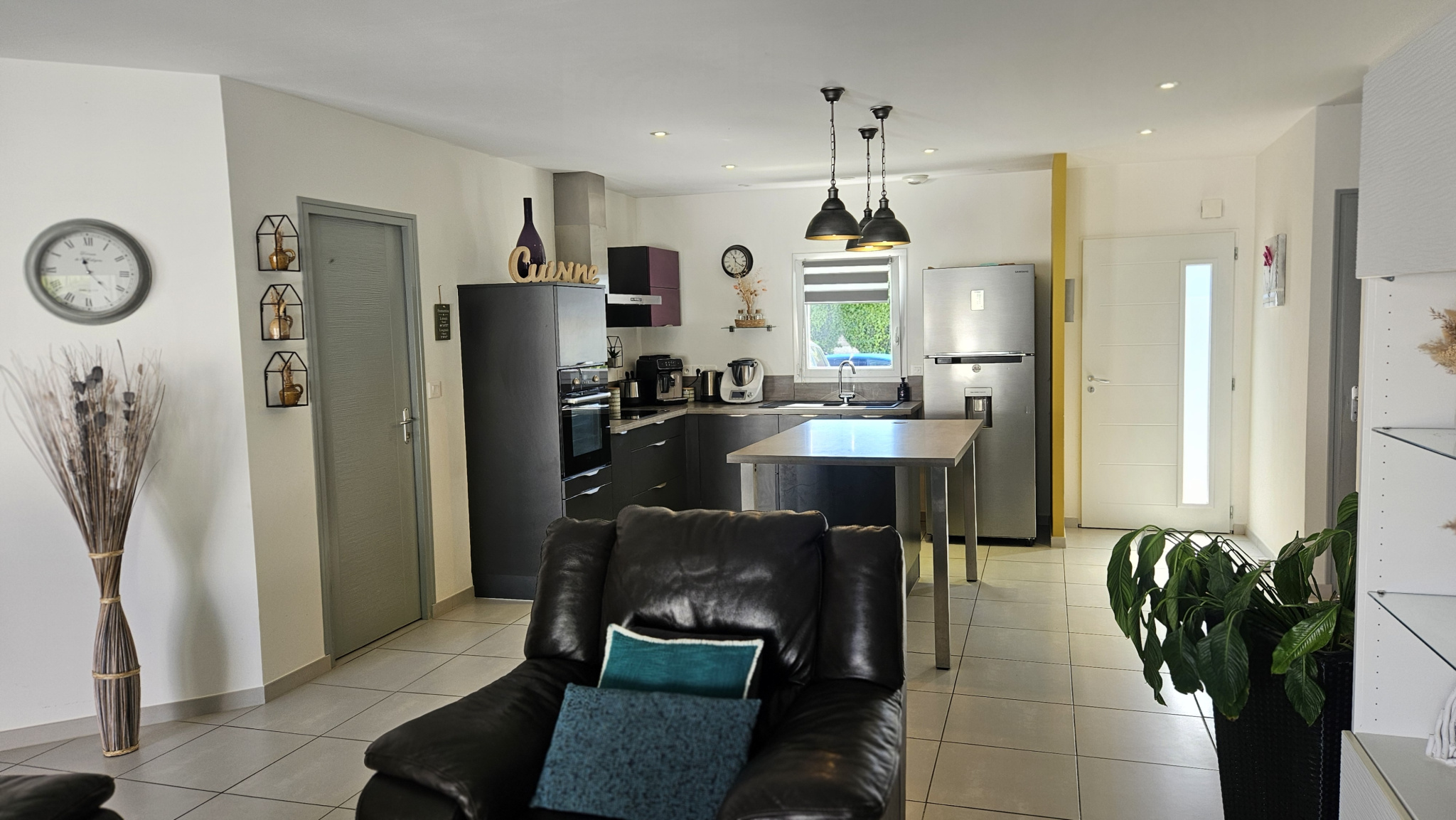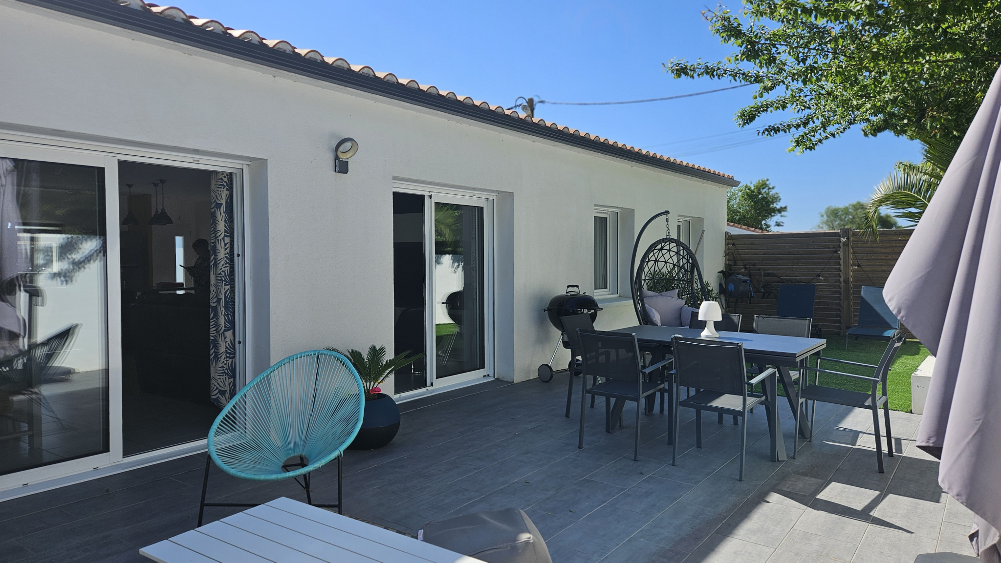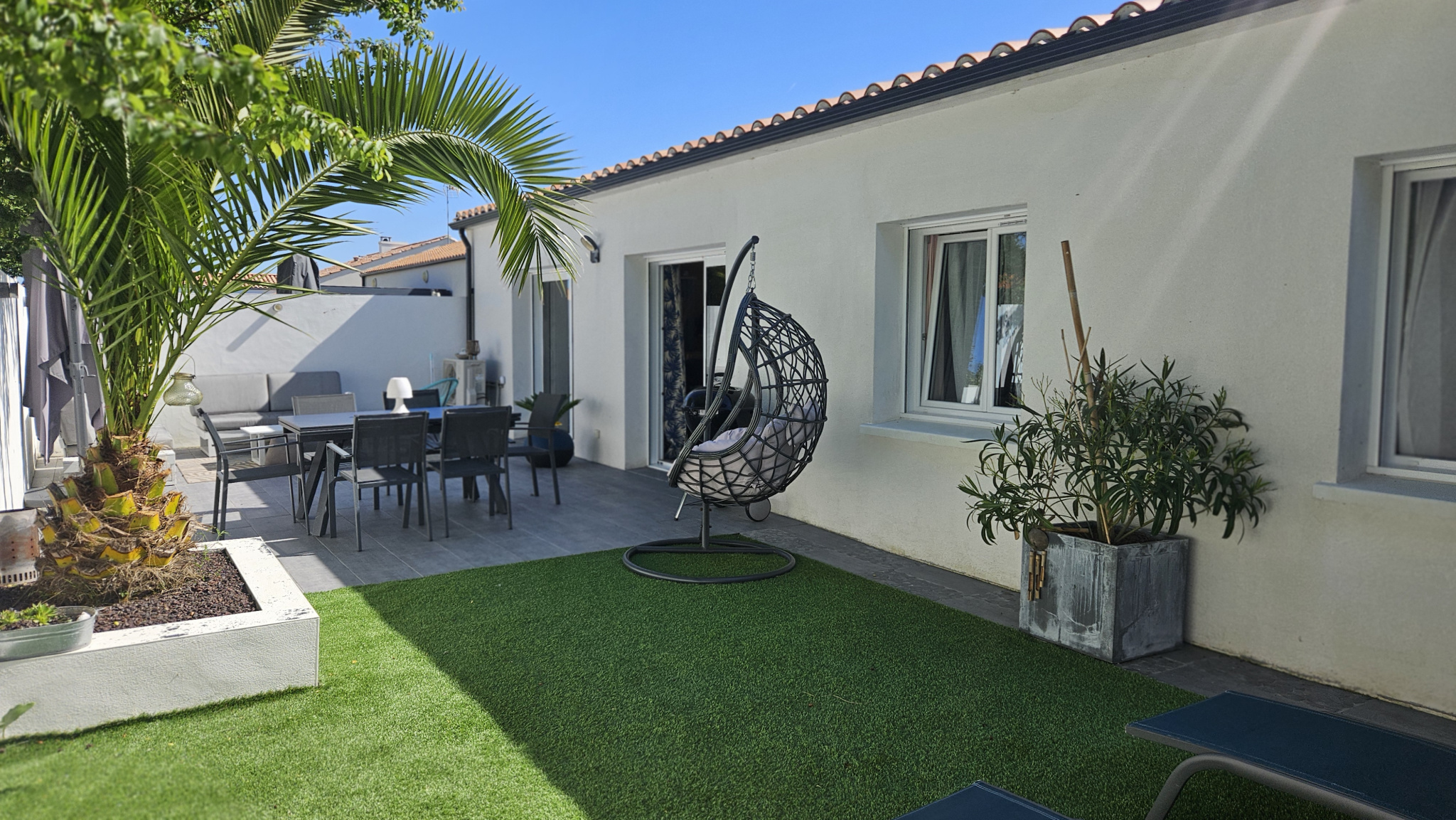 Proche du bourg de LA BARRE DE MONTS, belle maison de 2016, HABITABLE DE SUITE, de plain-pied, d'une surface habitable d'environ 88 m2 + garage à moto/vélo d'environ 12 m2. Le bien comprend: un vaste salon-séjour de 46,64 m2 avec une cuisine ouverte aménagée et équipée donnant sur une jolie terrasse orientée OUEST, trois chambres (d'un peu plus de 10 m2 chacune), une salle de douche, WC indépendants et un cellier/buanderie communiquant avec un garage à moto/vélo de 12,45 m2. Le tout sur un terrain clos et arboré de 366 m2. MONTS IMMOBILIER : UN ENGAGEMENT DANS LA CONFIANCE