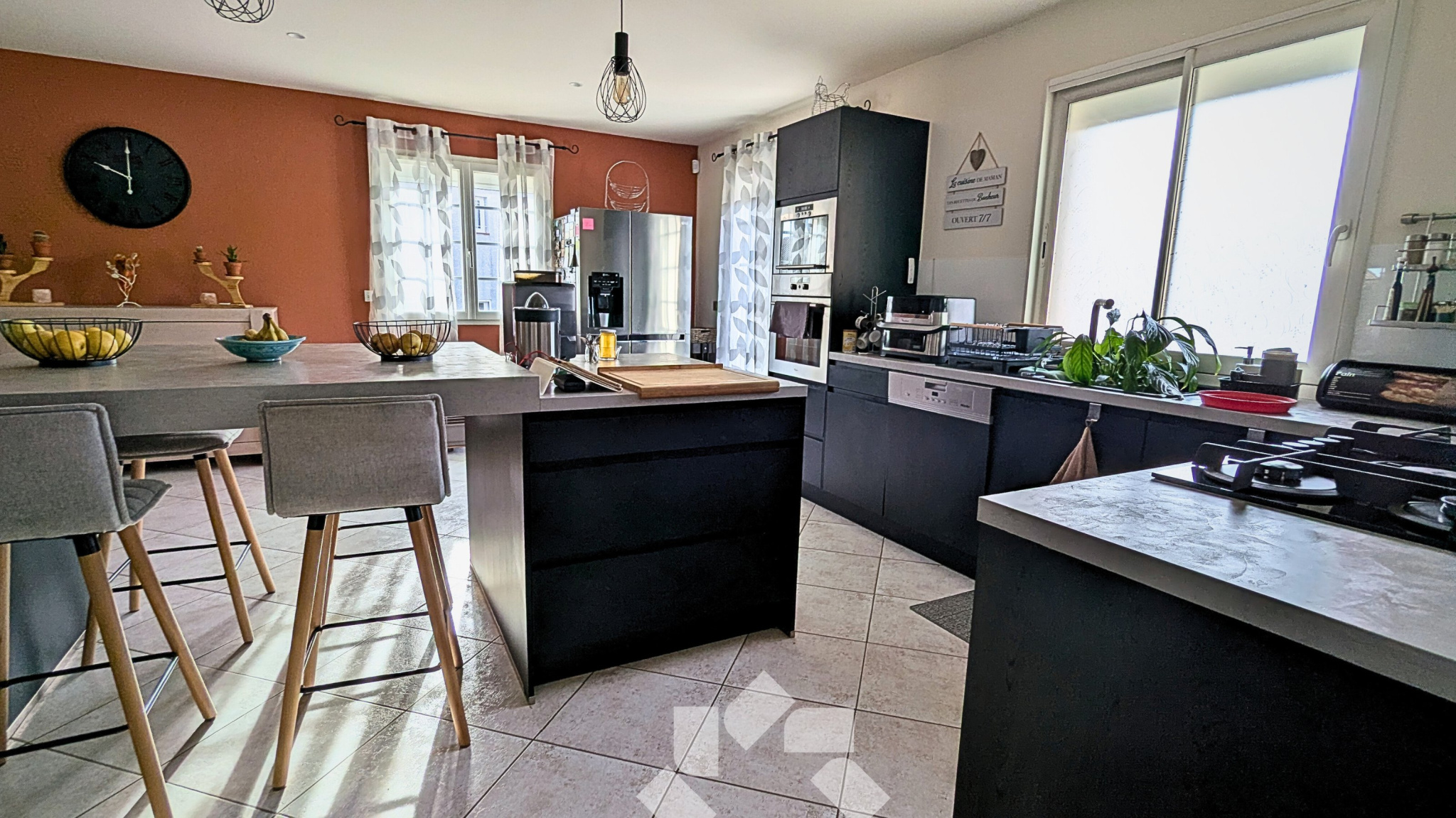 Elle propose de nombreux équipements de qualité, dont la climatisation réversible, des panneaux photovoltaïques, une belle cuisine équipée, de nombreux placards, menuiseries double vitrage, volets roulants électriques, conduit de cheminée, WMC hygro...