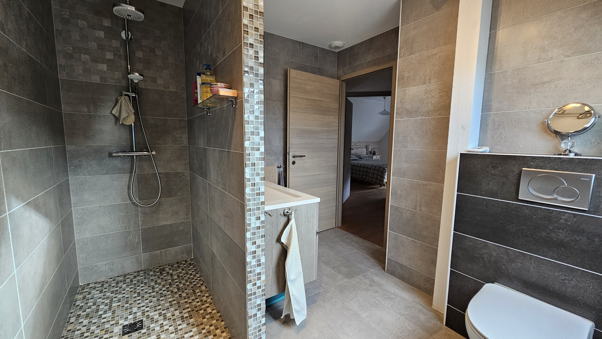 A l'étage une salle d'eau avec WV, trois chambres (10.80m2 -11.75m2 - 9.90m2).