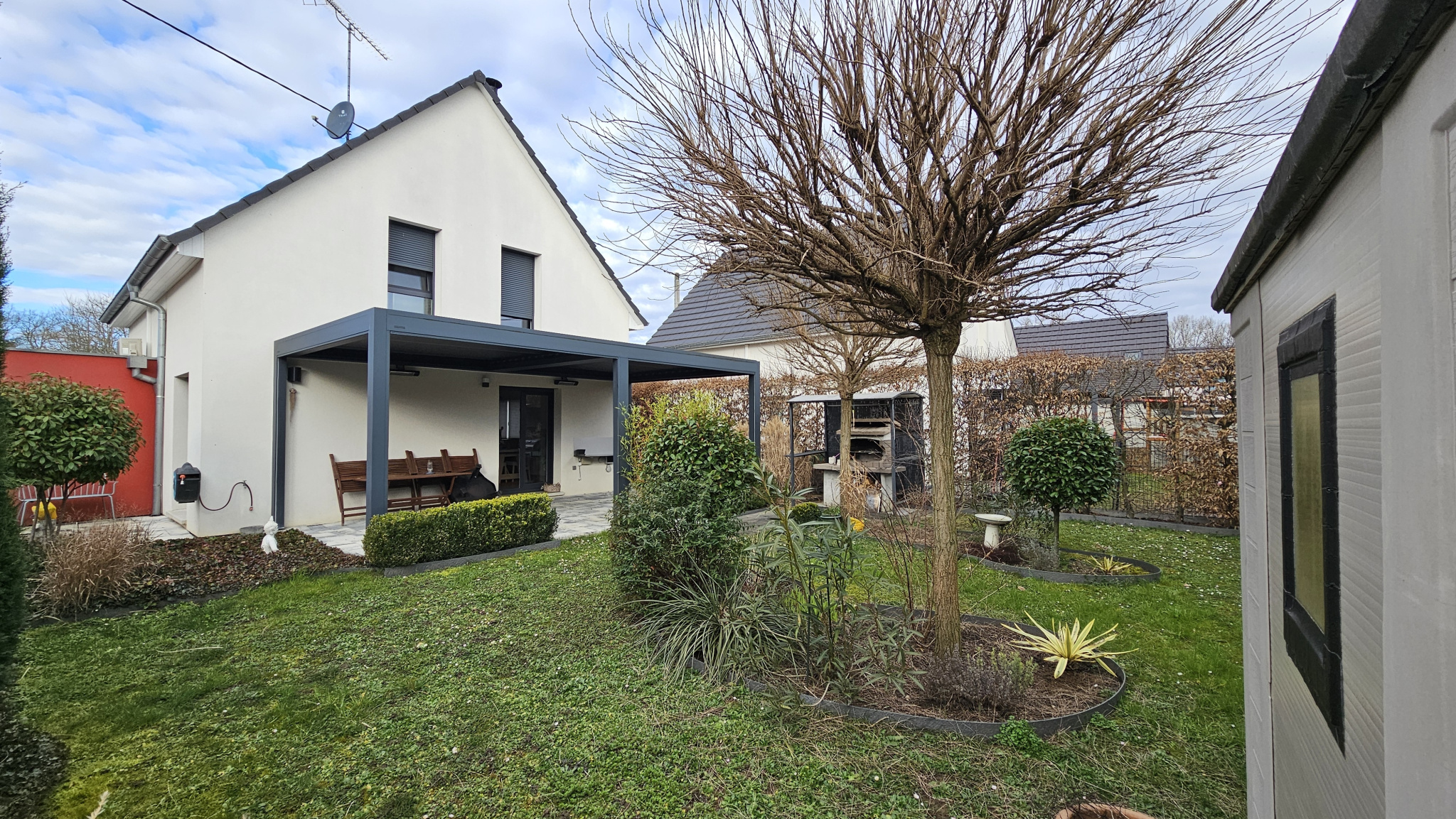 Sur la commune de Kembs-Loechlé, découvrez cette maison de 95.23m2 carrez composée d'une pièce de vie ouverte de 49m2 avec cuisine équipée donnant accès à la terrasse et sa pergola de 29m2, un WC, accès garage pour une voiture.