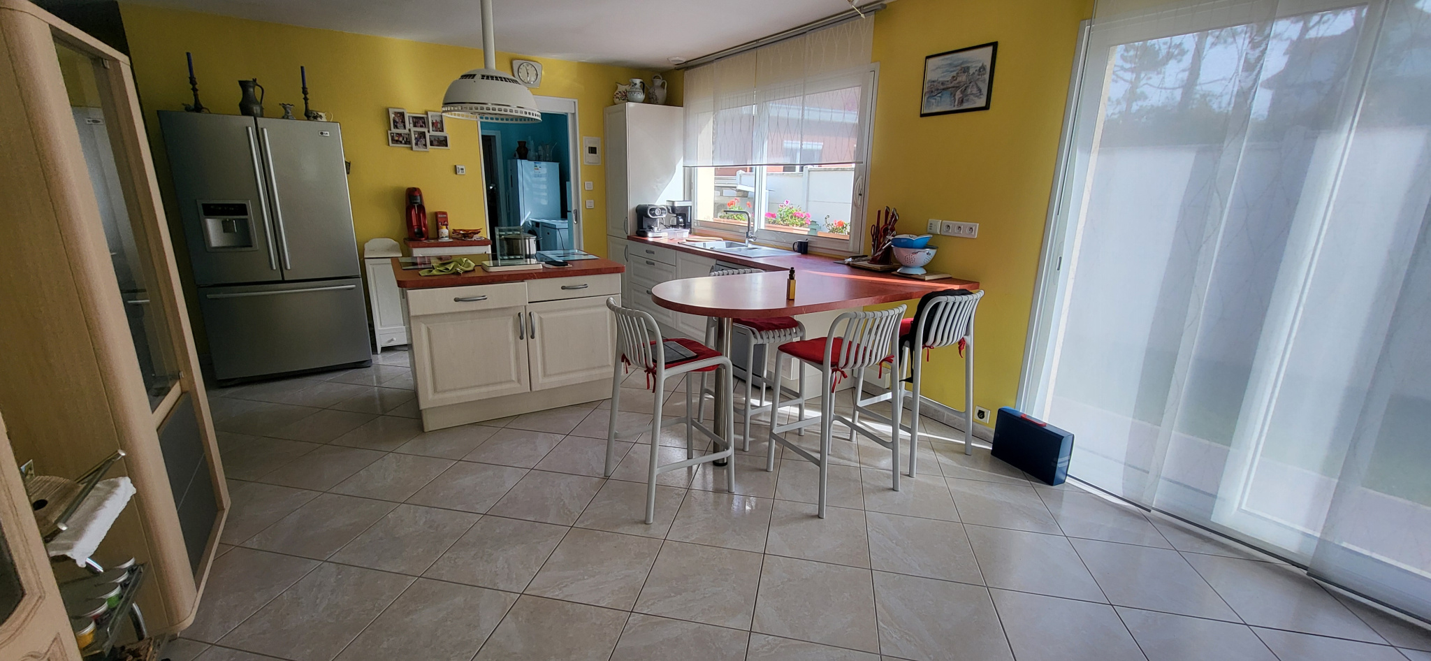 Pavillon de plain pied d'une surface habitable de 130 m2 environ comprenant :une entrée avec penderie, séjour-salon avec cheminée insert accès à la terrasse de 40 M2 env. , cuisine équipée et arrière cuisine, un cellier donnant accès au garage, 1 bureau, 3 chambres dont 1 avec suite parentale, salle de bains, wc, 2 bâtiments, un abri bois, aspirateur centralisé, panneaux solaires, fenêtre double vitrage en aluminium avec volets roulants électriques, Tout à l'égout. Pompe à chaleur , double garage, terrain 1400 m2 environ.