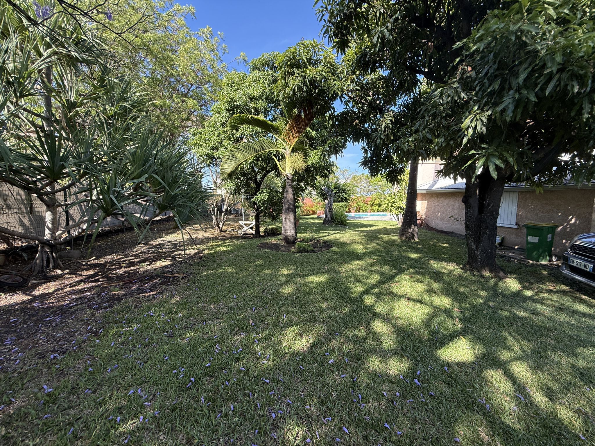 Dès l'entrée, vous serez immédiatement captivé par le vaste jardin verdoyant, véritable écrin de nature, méticuleusement entretenu par les propriétaires. Le terrain se compose d'arbres emblématiques de La Réunion : Palmiers majestueux qui bordent élégamment la propriété, Manguier, Litchi offrant un charme tropical unique. Cet espace extérieur procure une sensation de bien-être, d'intimité et de liberté. Il représente un véritable atout, tant pour les amoureux de la nature que pour les familles souhaitant disposer d'un grand espace sécurisé. La maison dispose d'une piscine, entourée de plages aménagées, permettant de profiter de moments de détente en famille ou entre amis. Les varangues, d'une superficie de 45 m2, prolongent harmonieusement l'espace intérieur vers le jardin, créant un lieu convivial idéal pour les repas, les soirées d'été ou tout simplement.