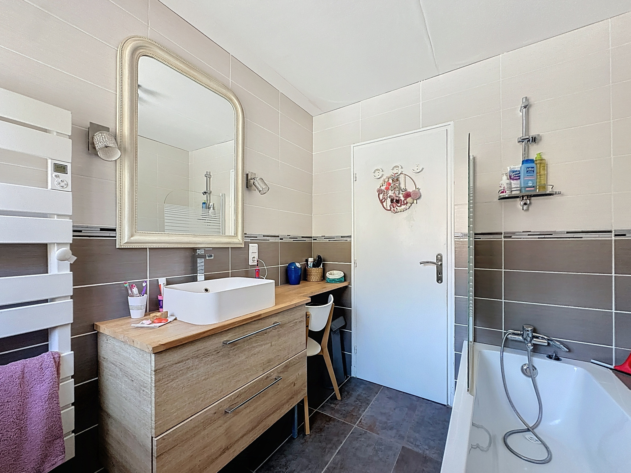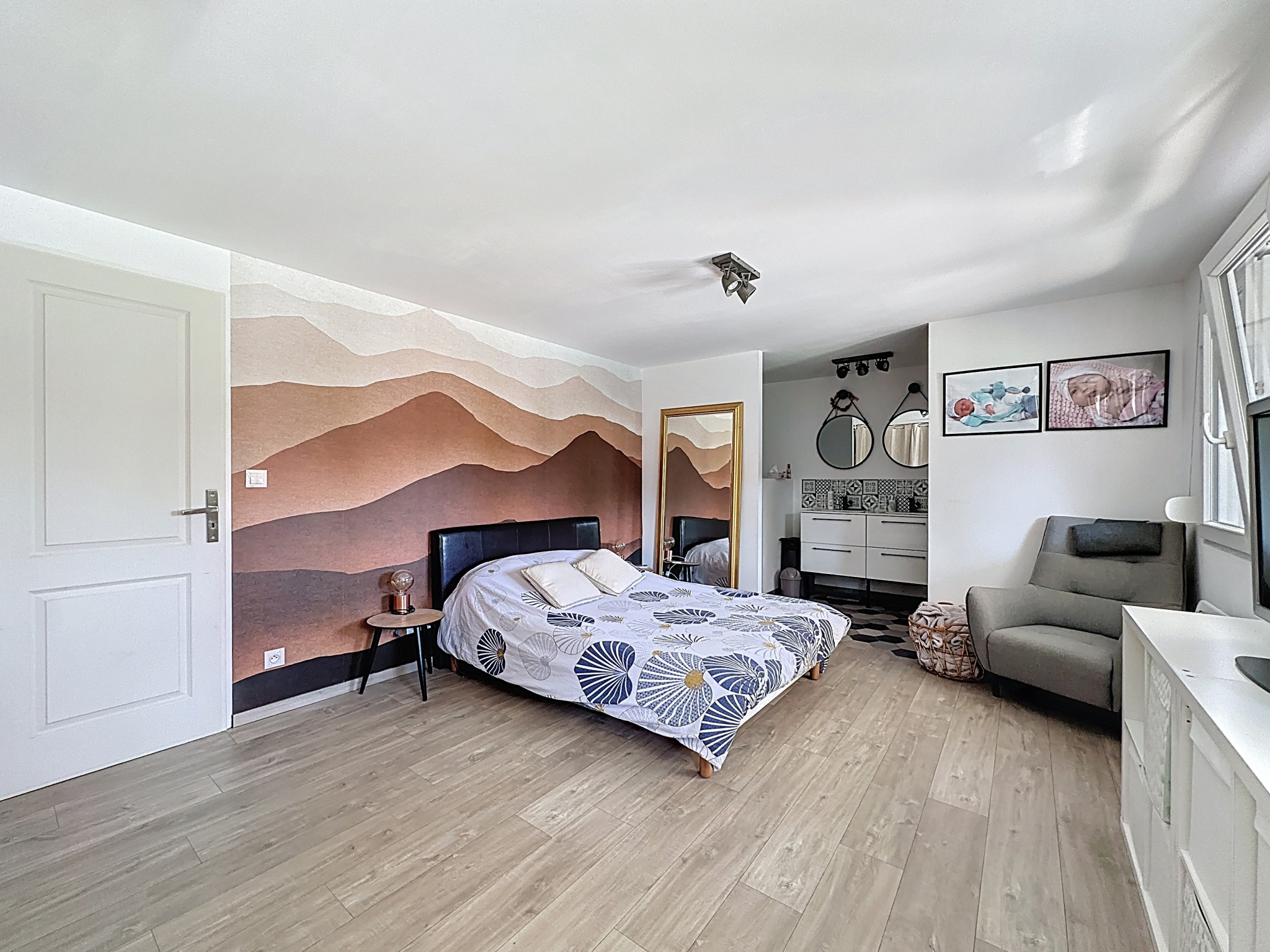 Au rez-de-chaussée, une partie du sous-sol a été aménagée pour répondre aux besoins d'aujourd'hui : un coin bureau, une buanderie, et surtout une belle suite parentale avec dressing et salle d'eau privative, offrant un espace plus intime, à l'écart des chambres de l'étage. Un grand garage complète l'ensemble, idéal pour stationner un véhicule et conserver un vrai volume de stockage.