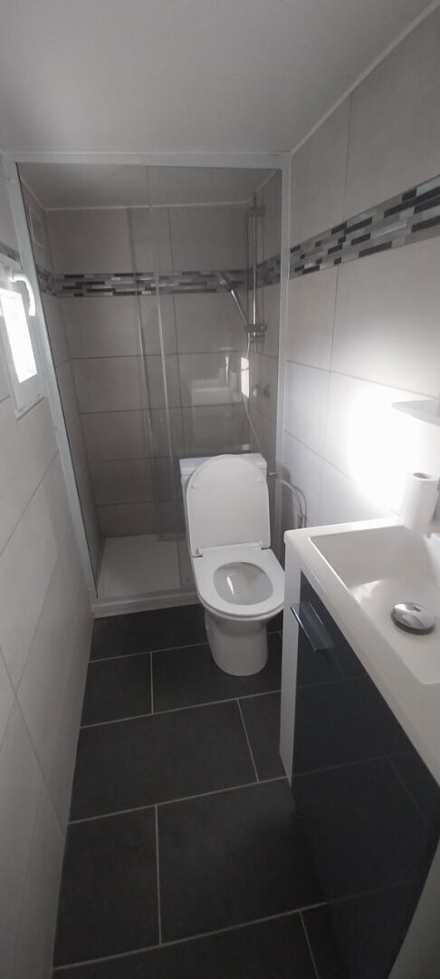 Maison de ville offrant rez-de-chaussée, une cuisine meublée, un séjour lumineux, ainsi qu'une salle de douche avec WC.